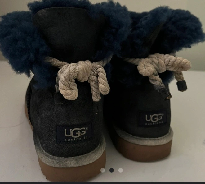 Ugg boots purple/ blue colour. sz 8 but run a bit small. great condition, just missing one of the white rope ties at the back