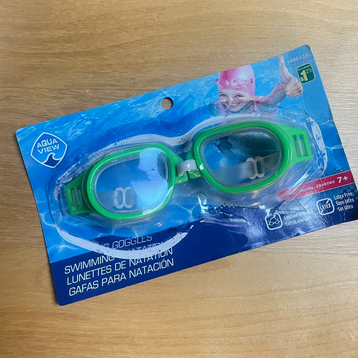 Open box but never used green swim googles for years 7+