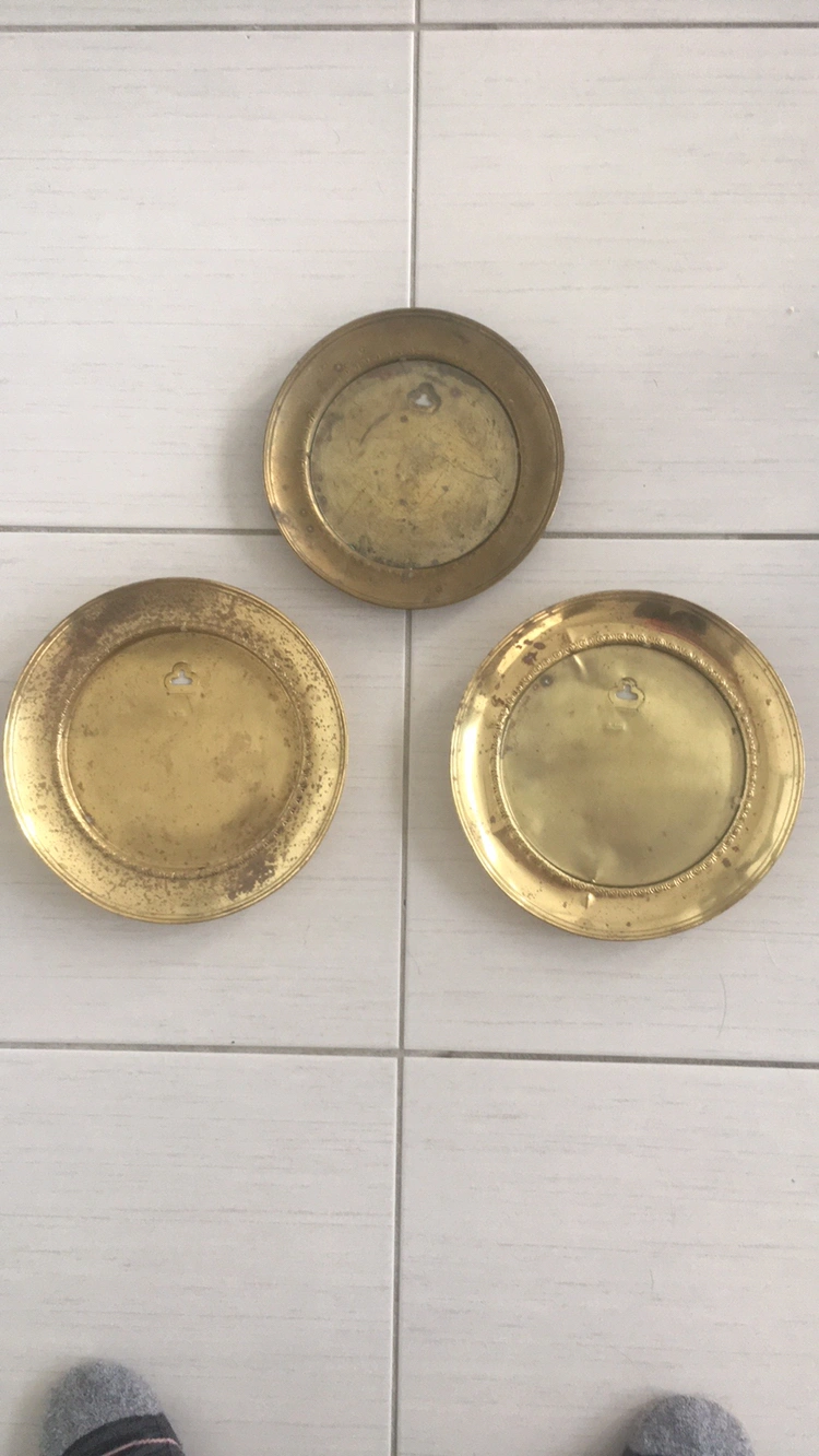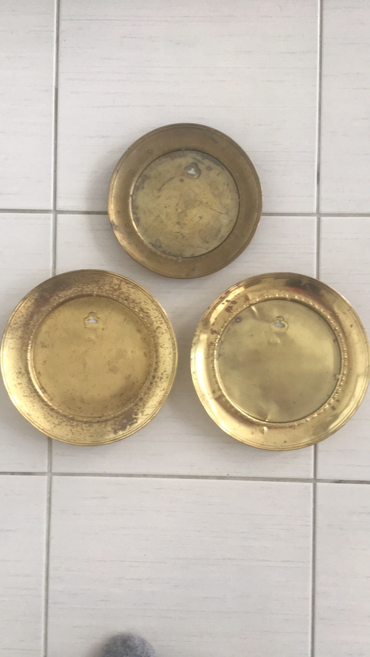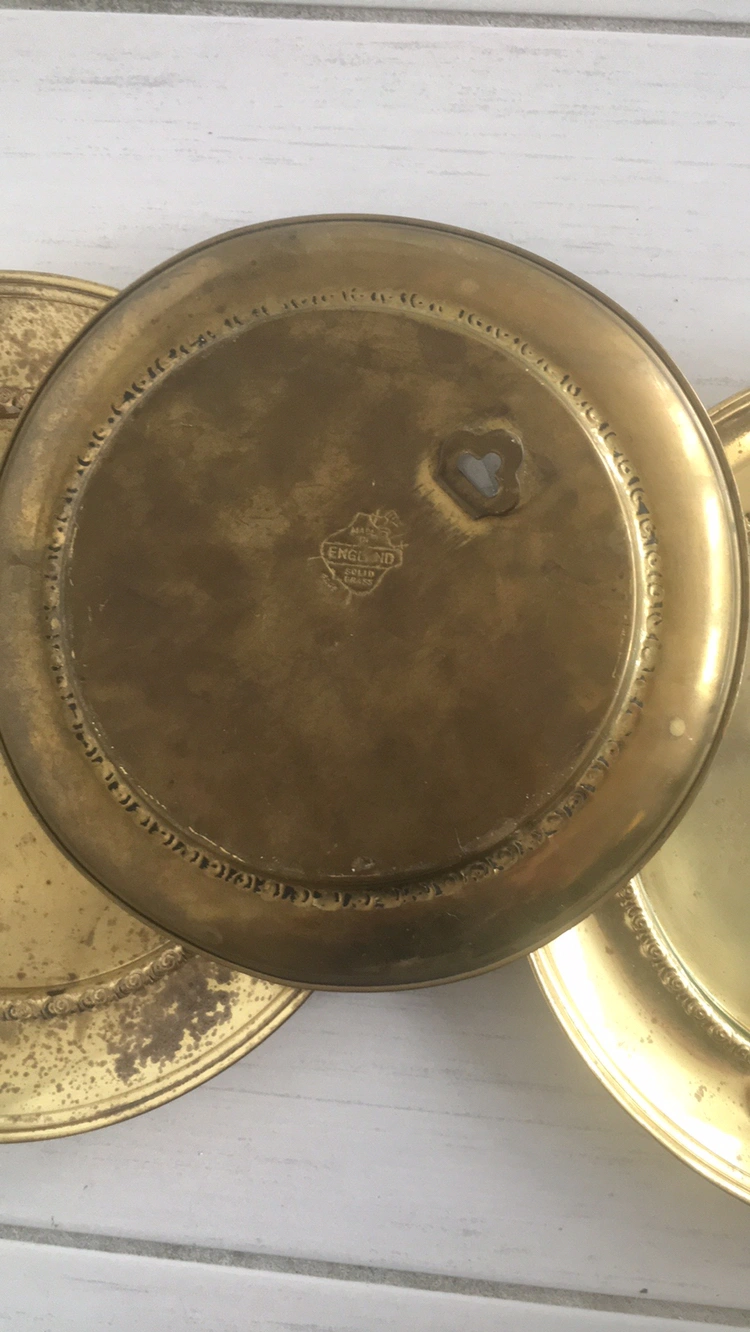 Set of 3 Vintage/Antique Round Brass Picture Frame Plates
