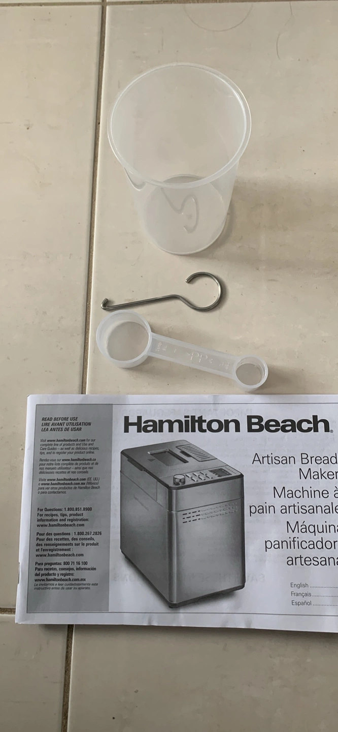 Accessories included: measuring cup and spoon, kneading paddle & paddle removing tool