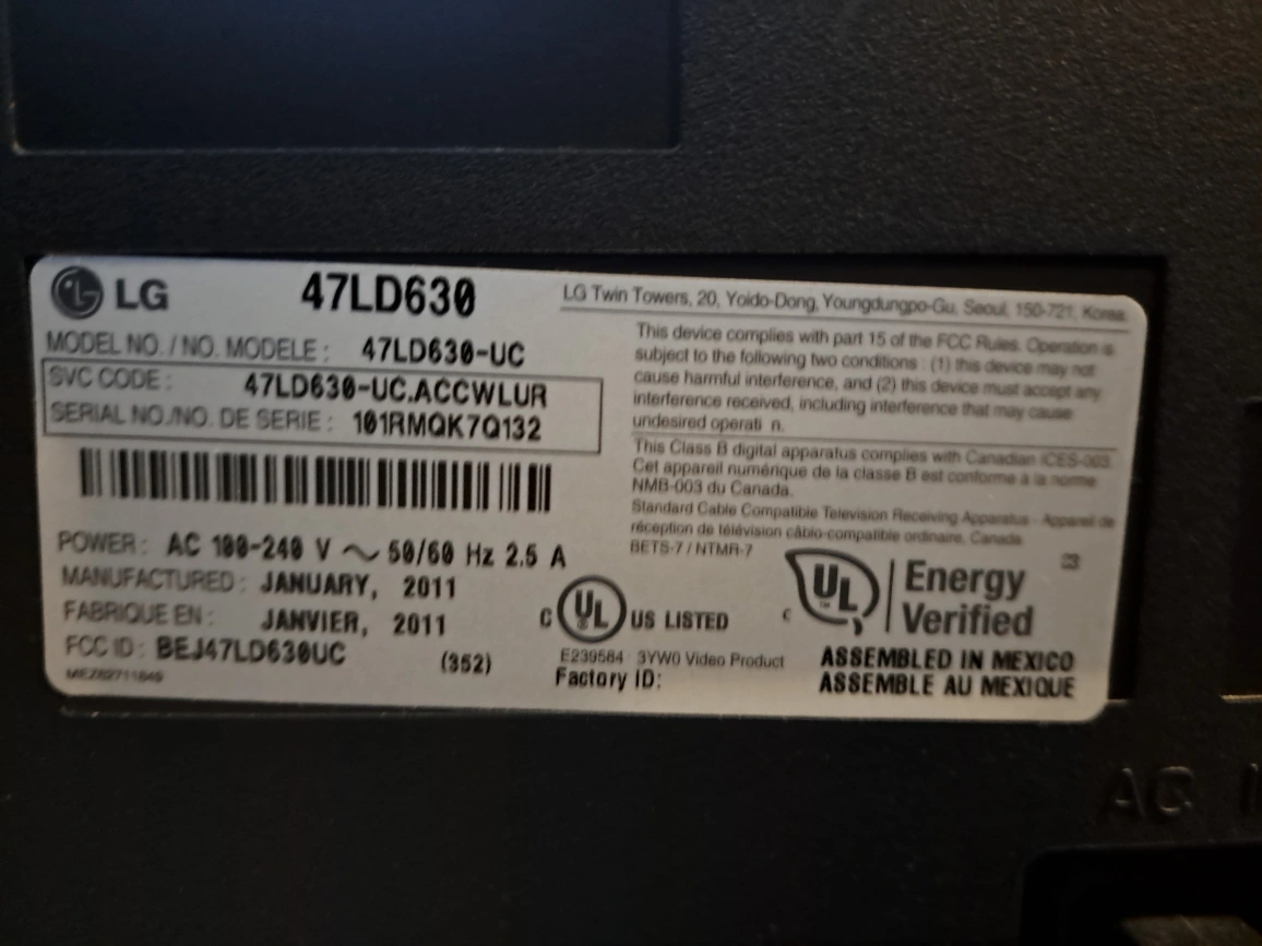47" LG TV, PICTURE GOOD, AUDIO GOOD. OLDER MODEL. HAS BEEN NOT BEEN USED IN OVER A YEAR. MODEL AND REMOTE IN PICTURES. PICK UP ONLY. Not a SMART TV.