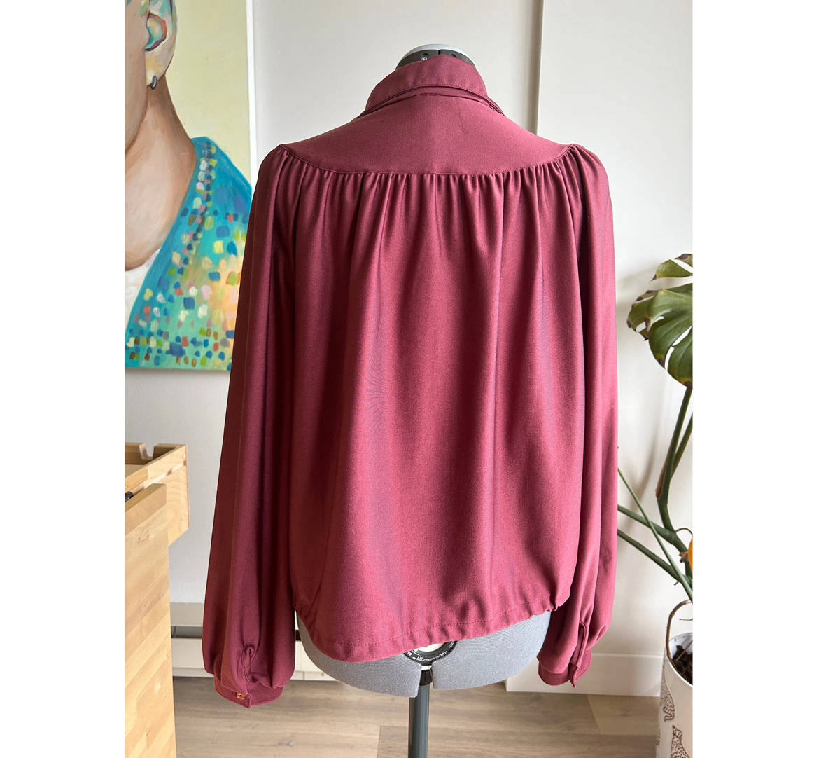 This beautiful high quality vintage blouse I found in Edinburgh, Scotland. I’ve only worn a couple times but it’s in excellent condition. Drawstring at the bottom to cinch it in more.