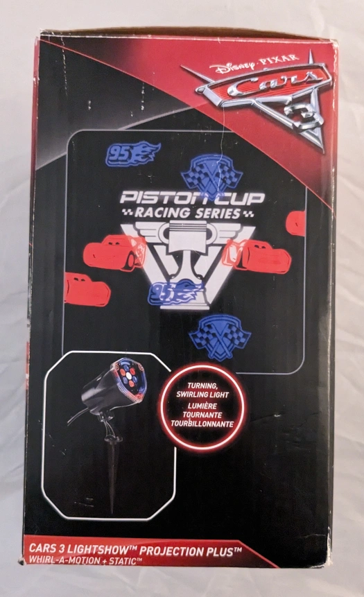 Never used. Still in original box. Projects Cars character and Piston Cup logo on the side of your house. Great for Halloween or a child's birthday to light up a room.