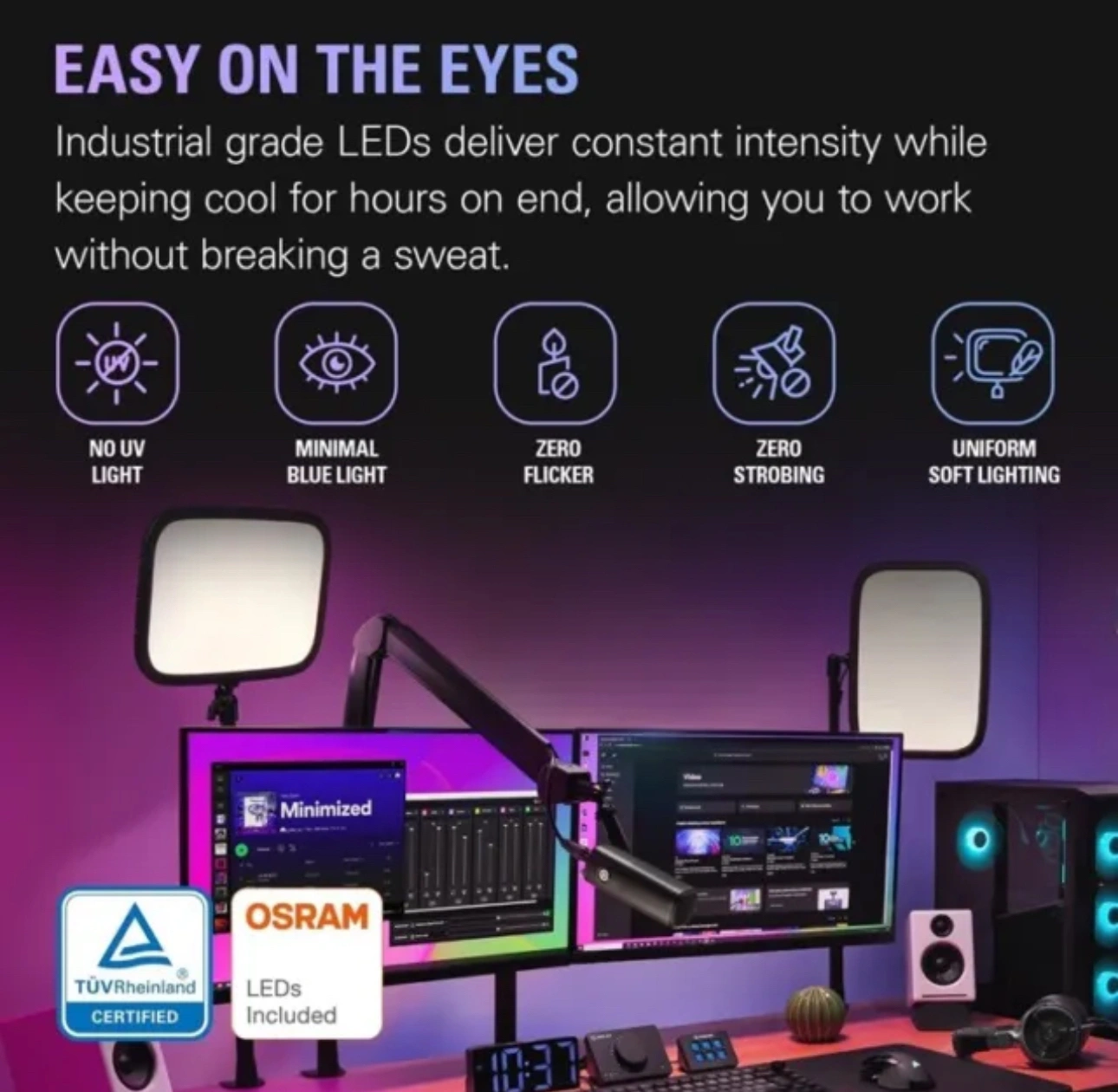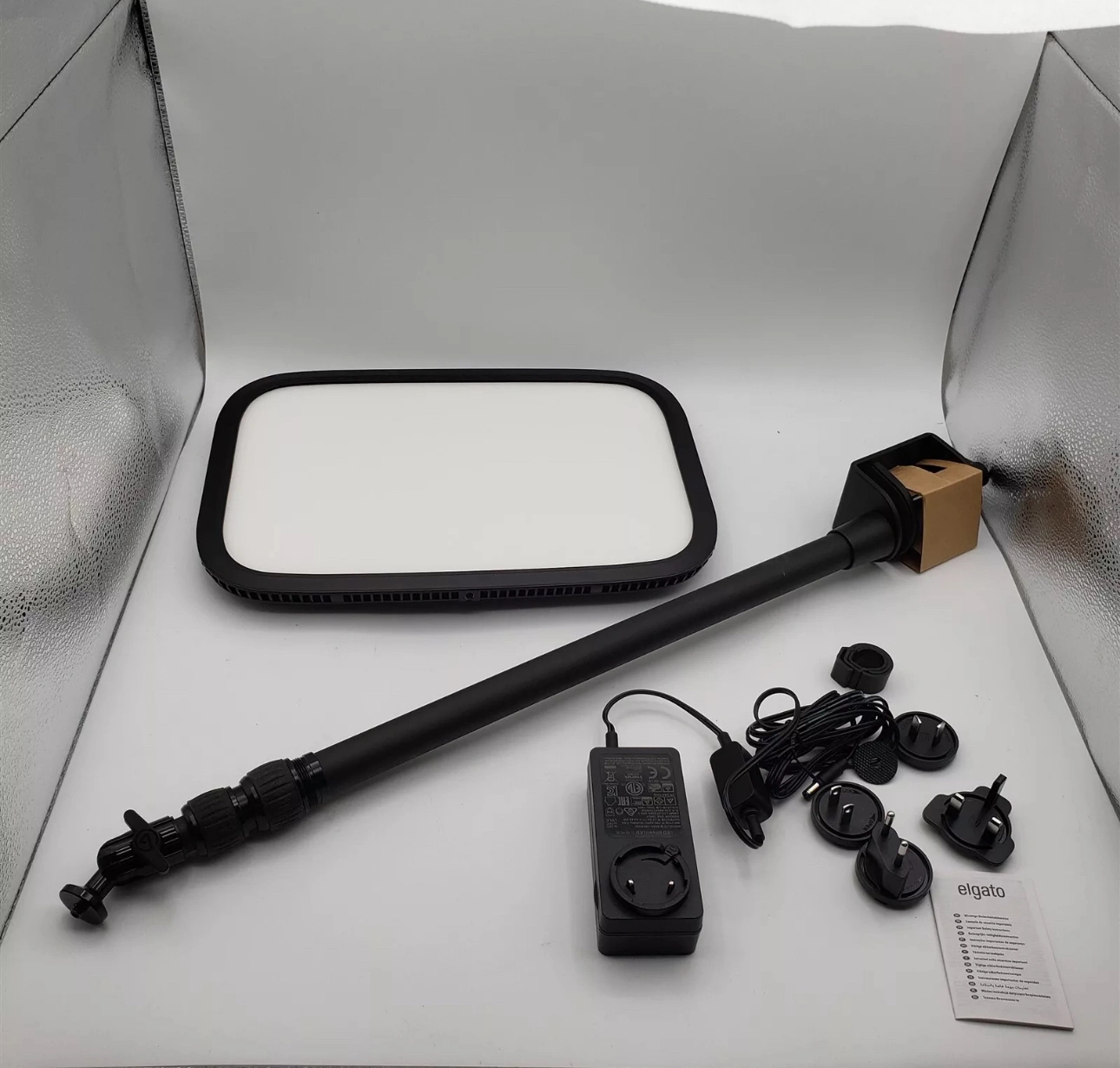 The Elgato Key Light is a professional-grade lighting solution for content creators, remote workers, etc. With 2800 lumens, adjustable color temperature, and versatile mounting and control options, it ensures you’re perfectly lit for streaming, recording, or virtual meetings. Used but in brand new condition