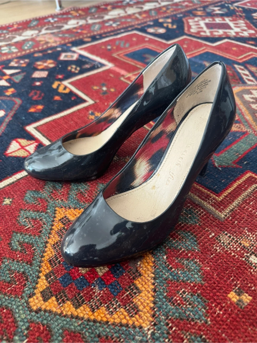 Anne Klein black patent leather heels. These stylish pumps feature a comfortable fit and a classic design. Size 5.5. Perfect for dressing up any outfit!