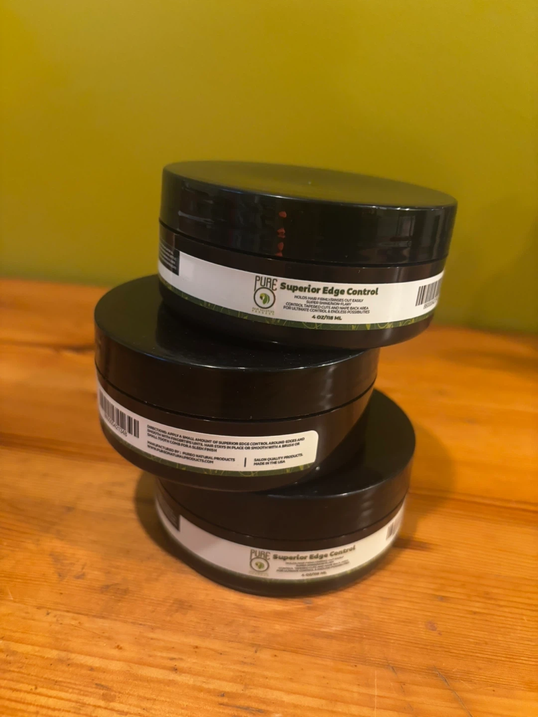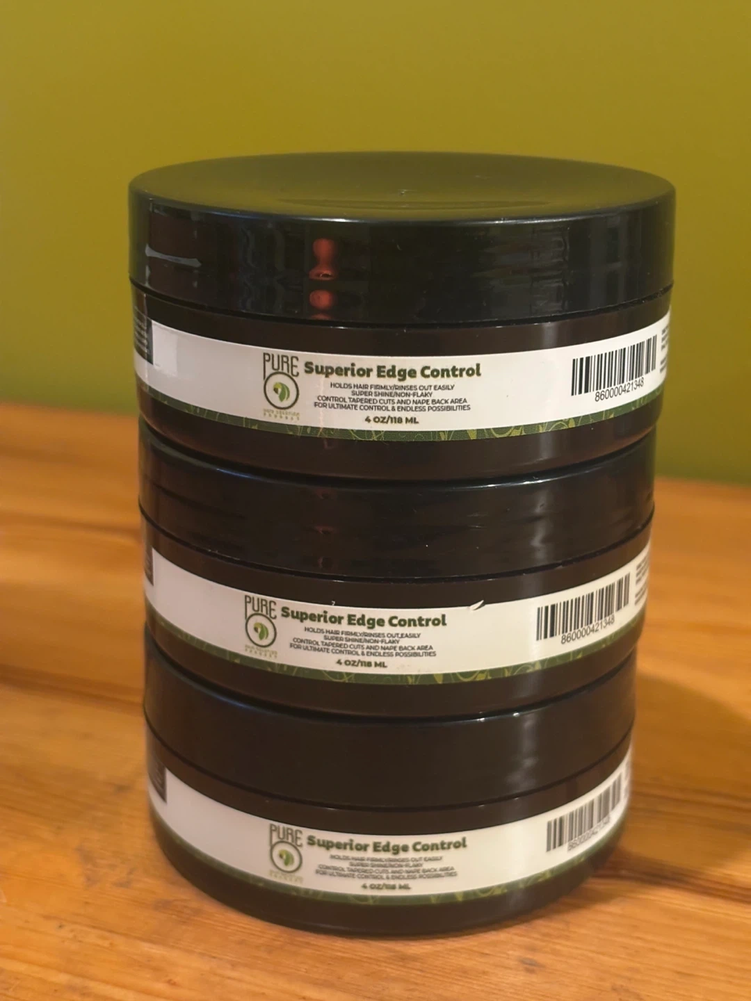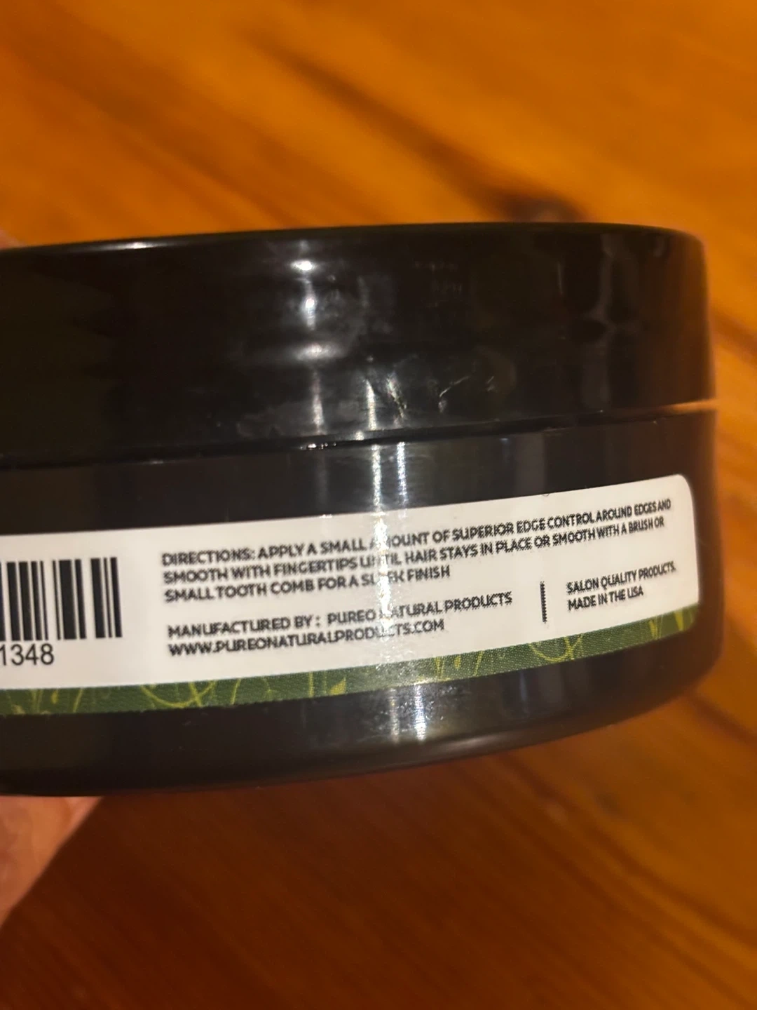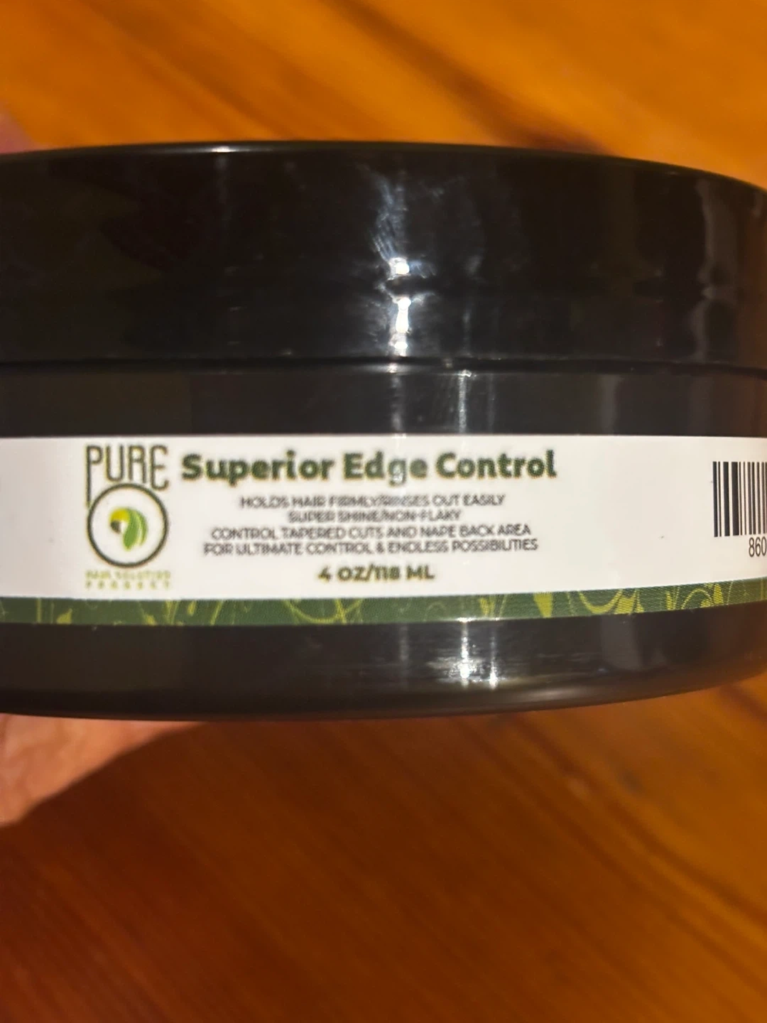 PURE Superior Edge Control hair gel holds hair firmly and rinses out easily. It's non-flaky and provides super shine. This gel is 4 oz / 118 ml. Manufactured by PURE Natural Products in the USA.