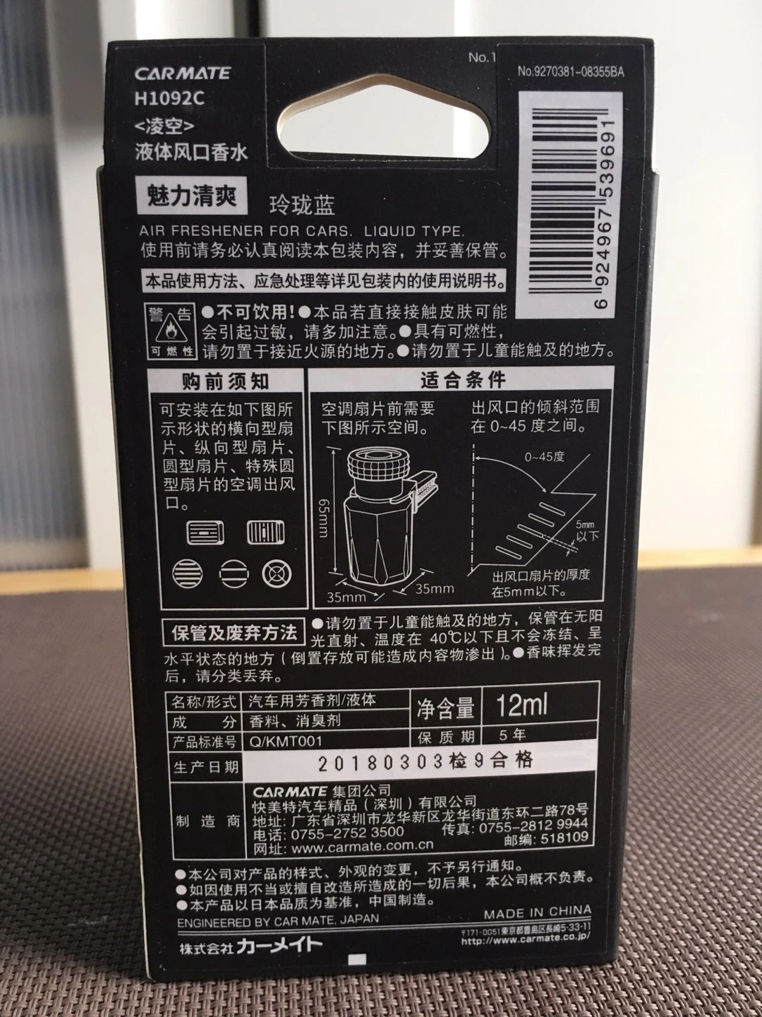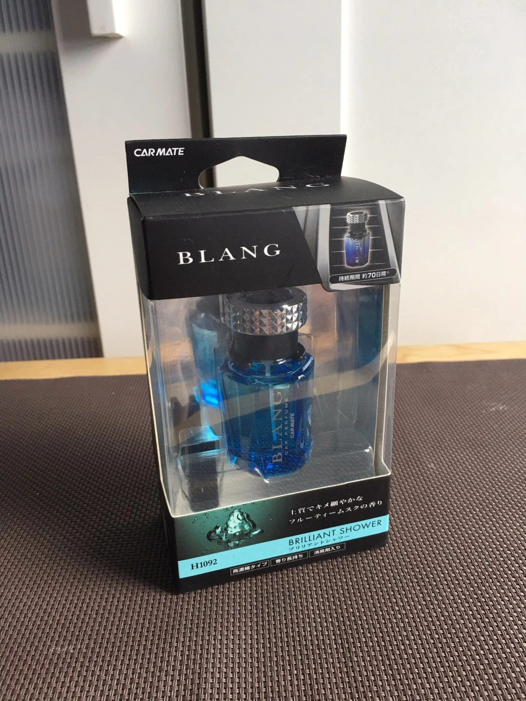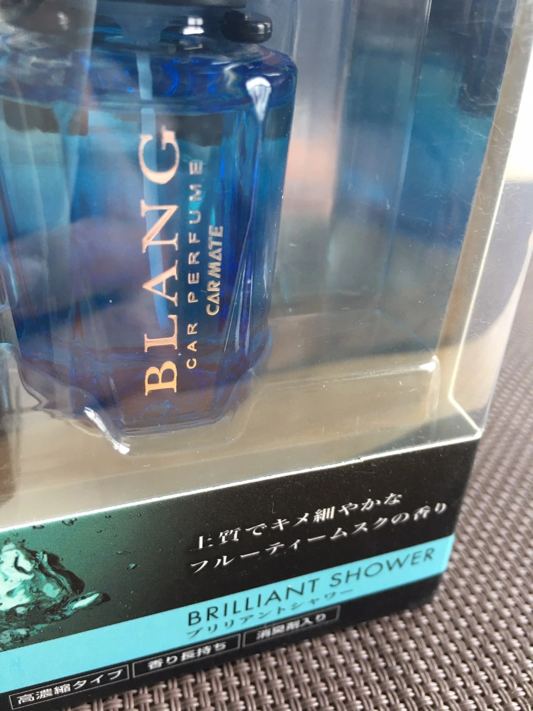 - Scent: Brilliant Shower (High Quality and Detailed Fruity Musk Scent); A miniature air freshener from Carmate "Blang Sirius Liquid Series"