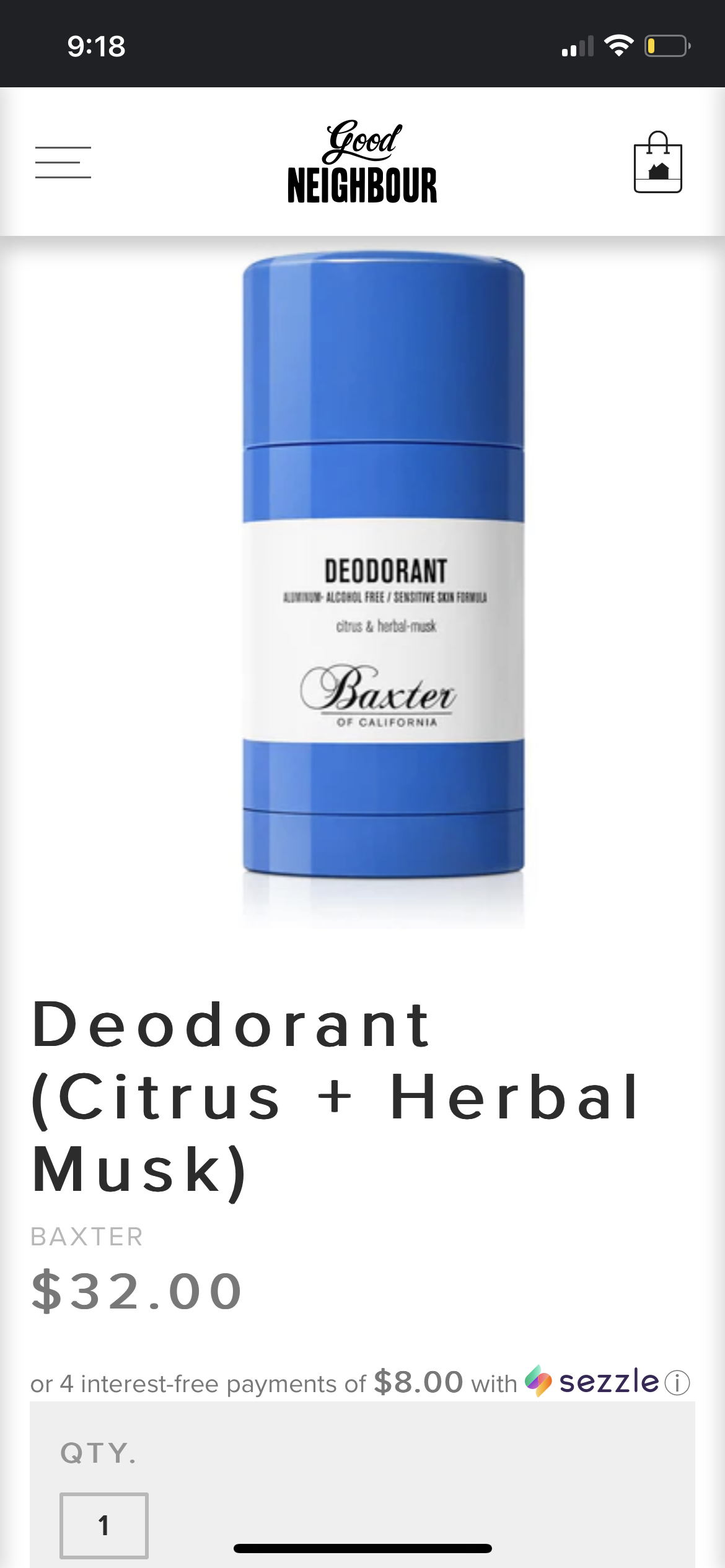 1 / 41 / 4Buy & SellMen’s Deodorant Baxter of CaliforniaMen’s Deodorant Baxter of California$14Unopened still has the plastic seal on it. Citrus & Herbal-musk essence.ConditionNewBrandBaxterWHERE TO MEETChinatownView MapSELLERFredChinatown51341 reviews2 chats·0 favorites·44 viewsSEND CHAT TO SELLERHi Fred! I’m interested in your listing.Hi Fred! I’m interested in your listing.Get the Karrot app to chatSign In to chat