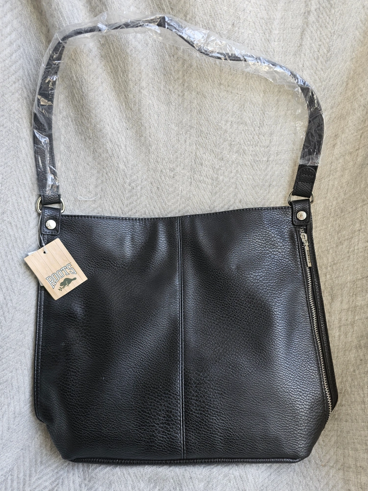 Beautiful new with tag black leather hobo purse from Canadian premium brand Roots!