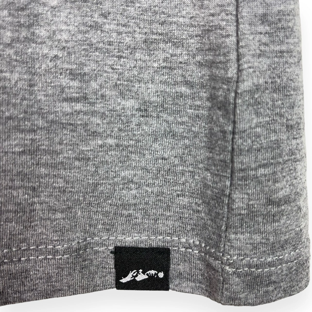 Logo patch at left hemline.