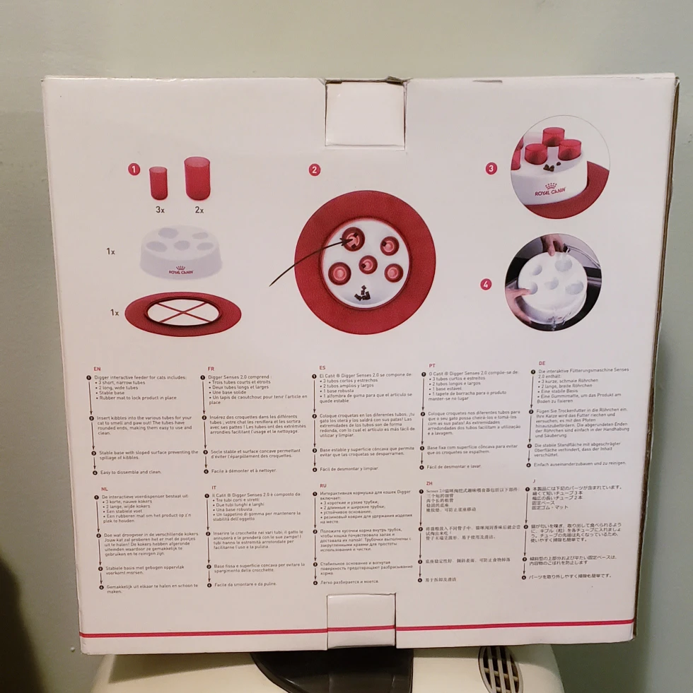 Playful slow feeder with a stable base and cups to fill with cat food or treats.