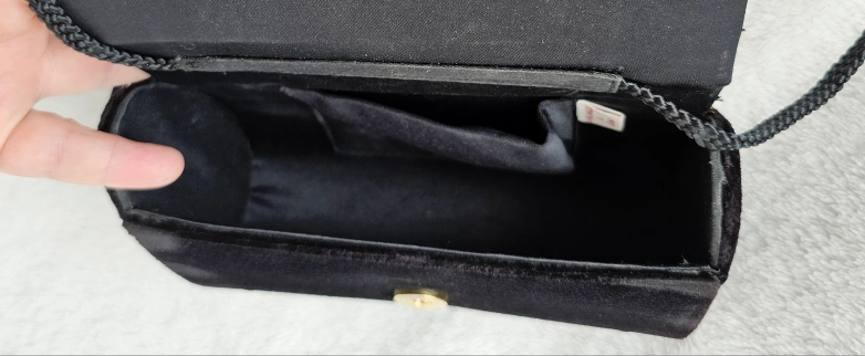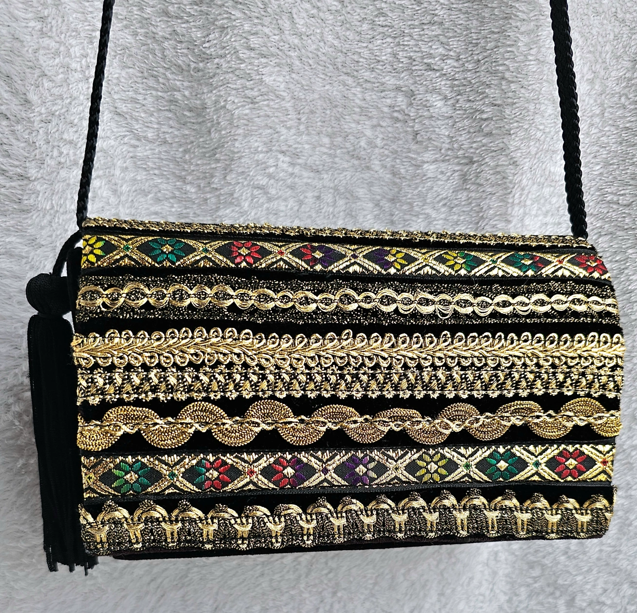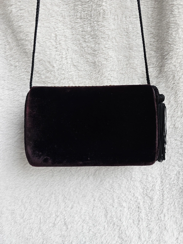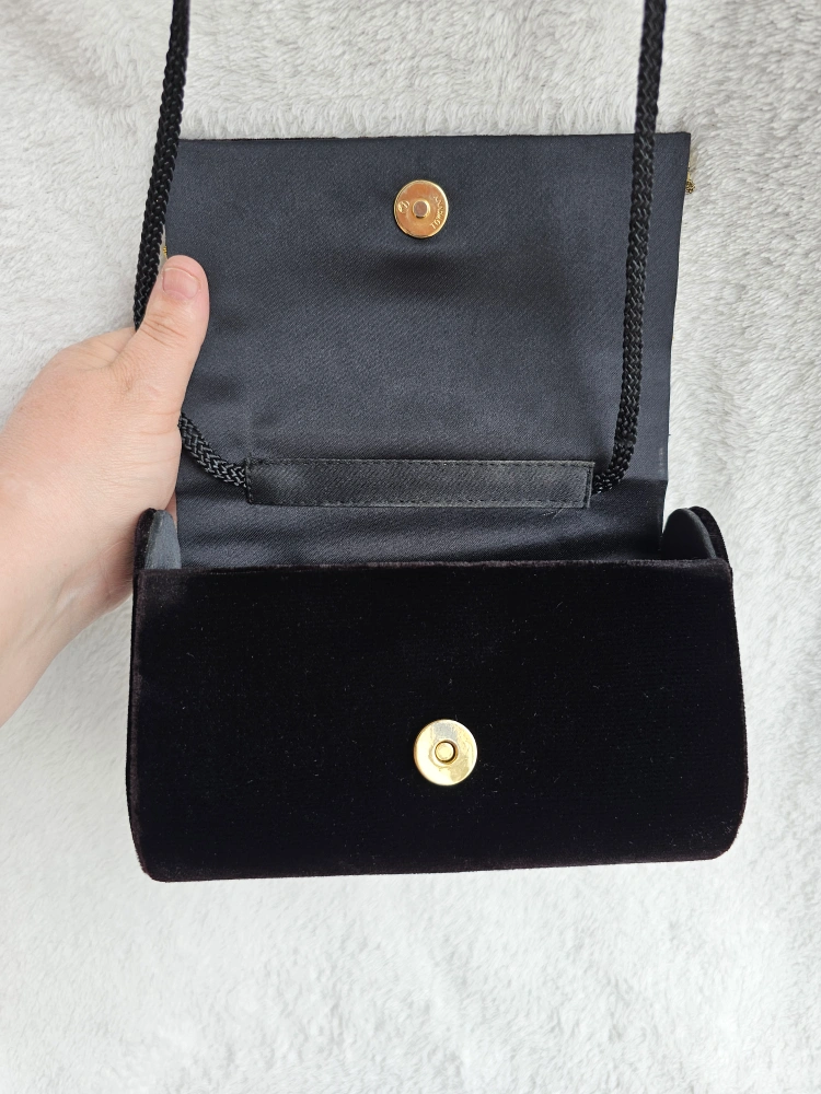 Artisinal Black Velveteen Purse w Gold Geometric Embellishments