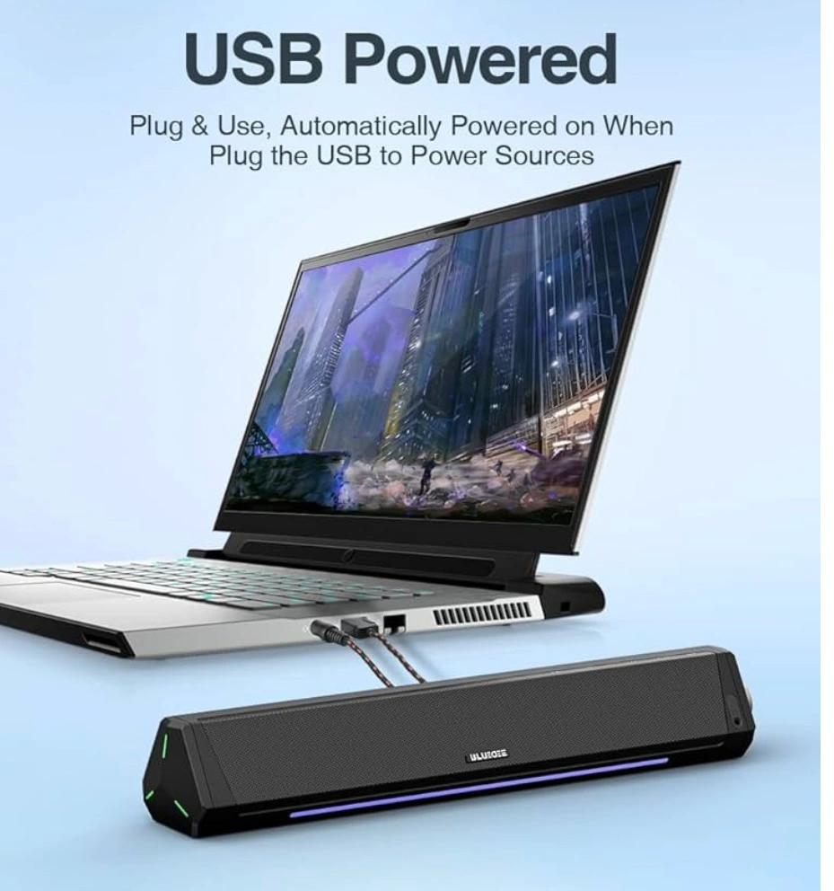 Computer Speakers, Dynamic RGB Computer Sound Bar, HiFi Stereo Bluetooth 5.0 & 3.5mm Aux-in Connection, USB Powered Computer Speakers for Desktop, PC, Laptop, Tablets