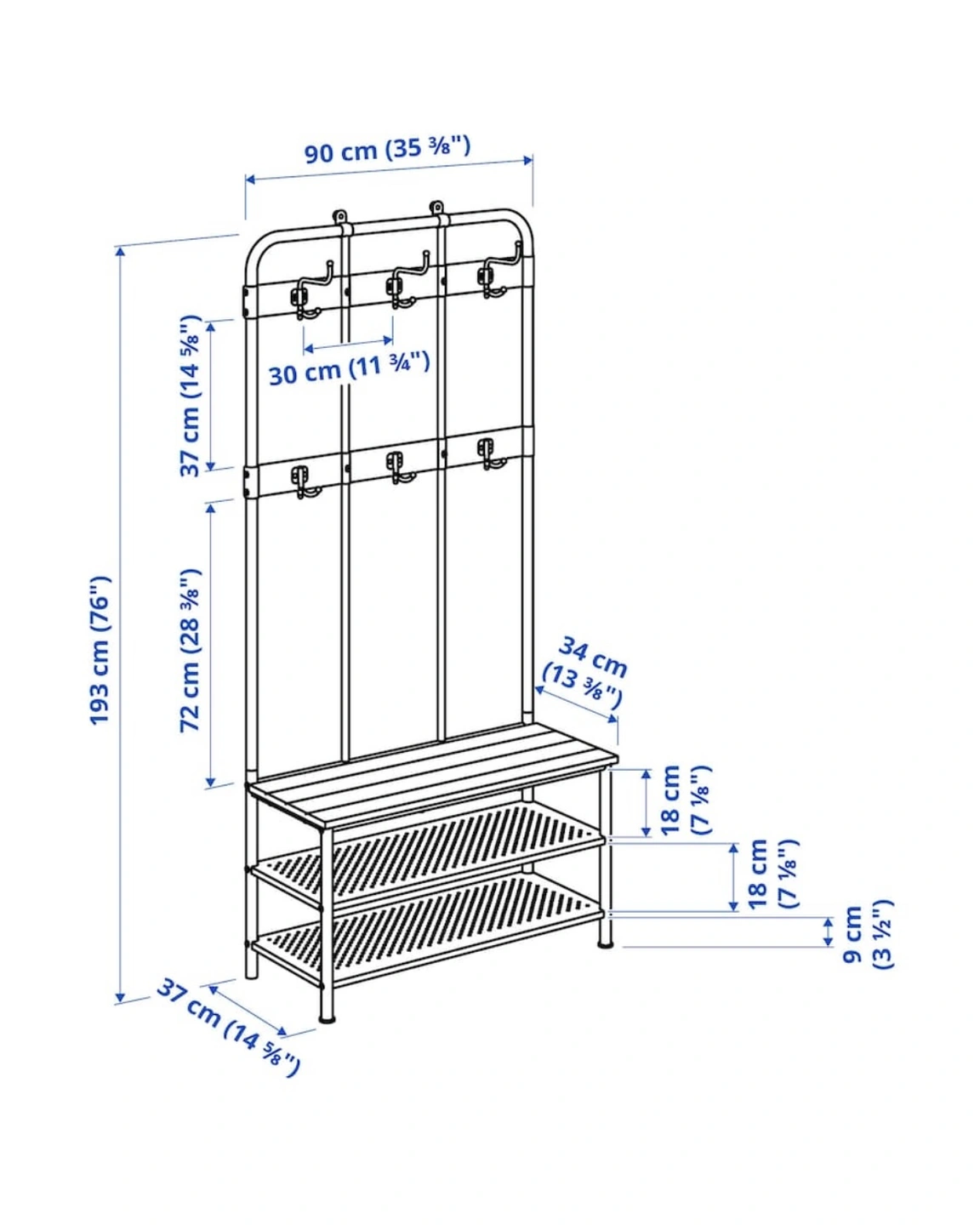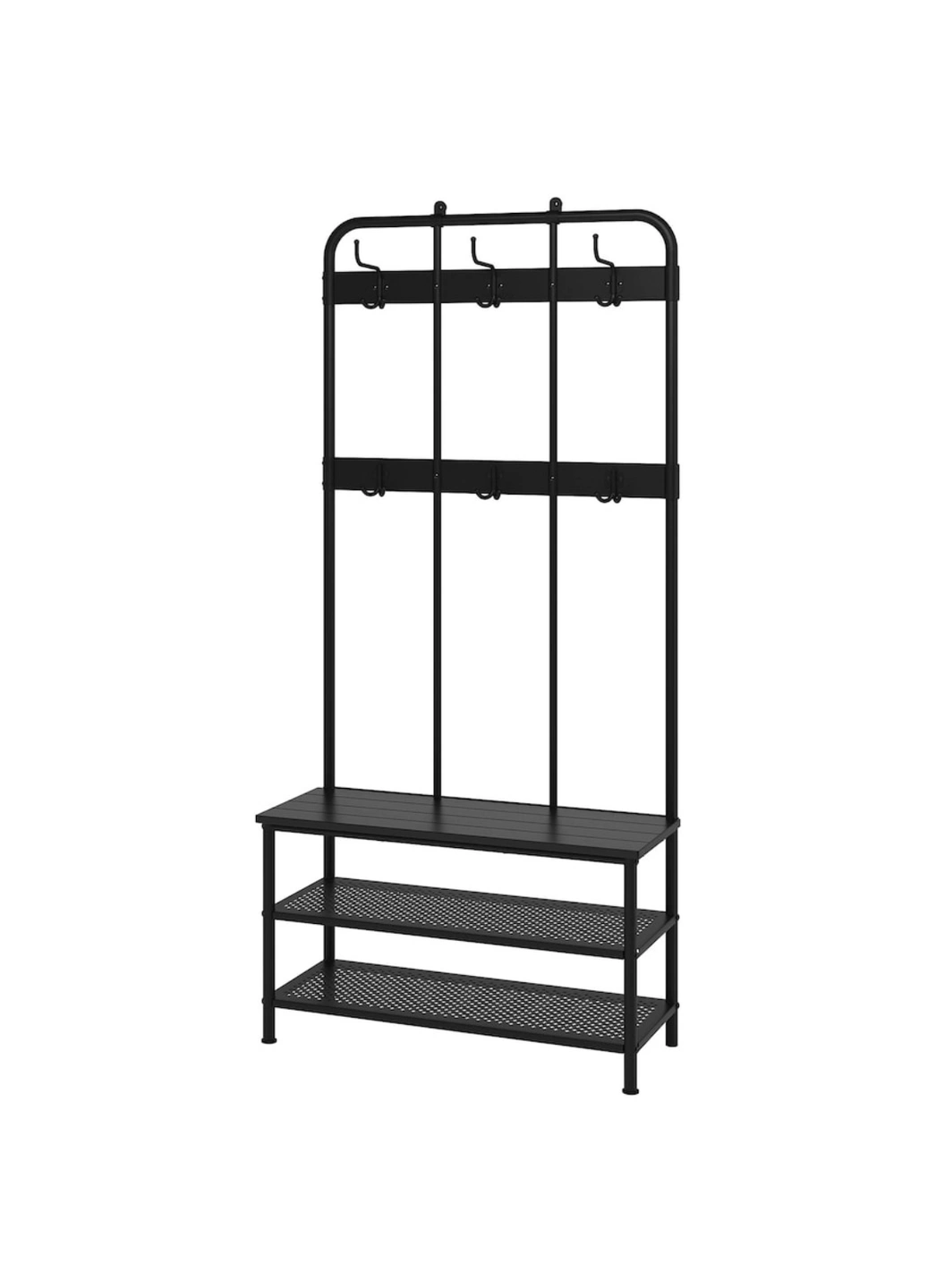 Selling IKEA PINNIG Coat rack with shoe storage bench, black, 193x37x90 cm (76x14 5/8x35 3/8 ")