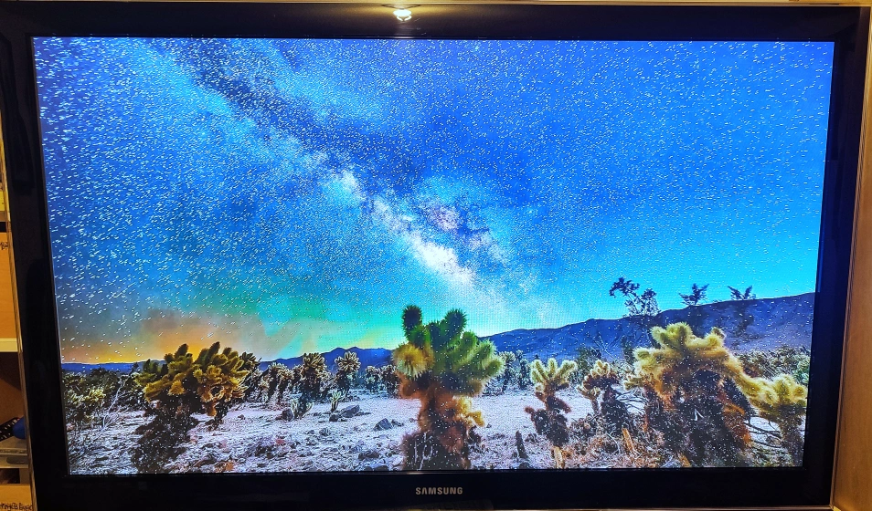 Samsung PN50C6400TF Plasma TV. Not Smart TV but compatible with all internet tv or tv boxes out there.