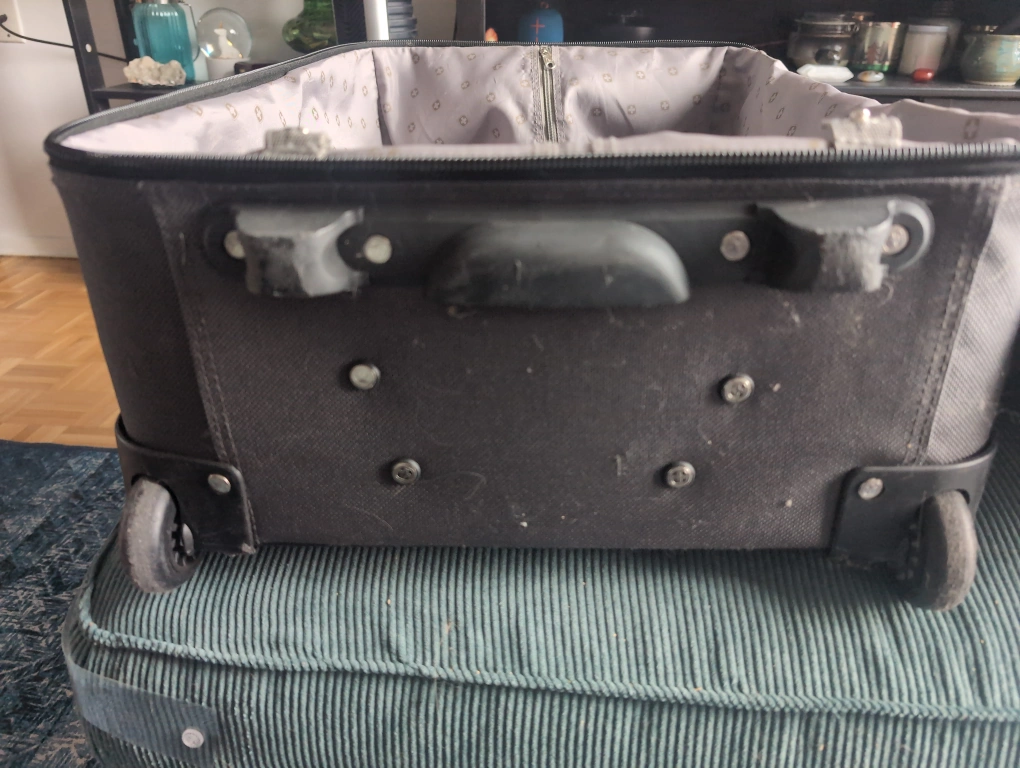 Worn but good condition (see photos for wear and tear). length 26" width 19" height 9" but extendible.