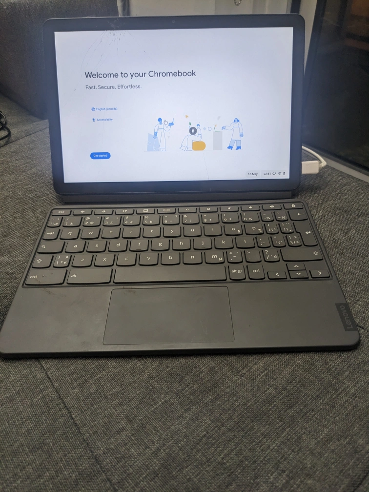 The screen is slightly cracked and the touch is not working. The detachable keyboard works perfectly. Can be used as a mini laptop.