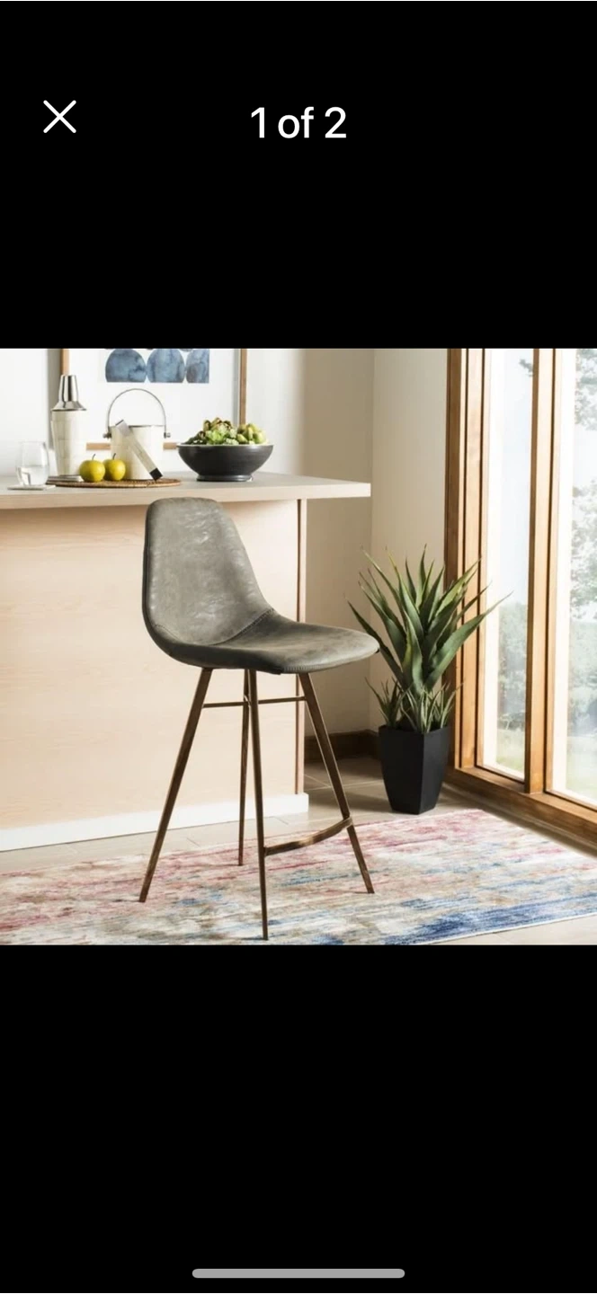 Selling a stylish bar stool with a grey faux leather seat and metal legs! It's in great condition and would look fantastic in any kitchen or bar area
