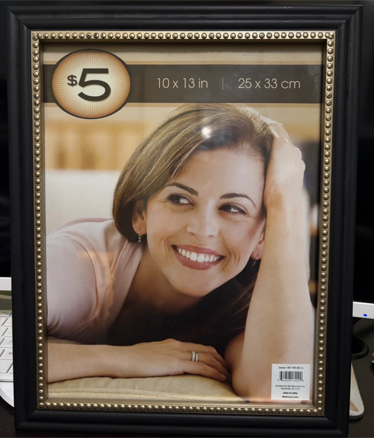 Selling a picture frame that's perfect for displaying your favourite memories! It measures 10 x 13 inches (25 x 33 cm). The frame has a classic black and gold design.