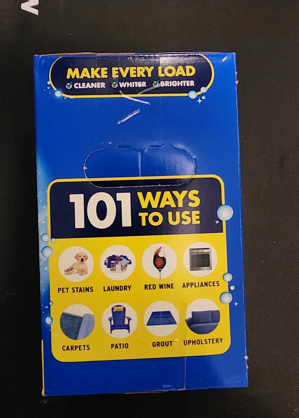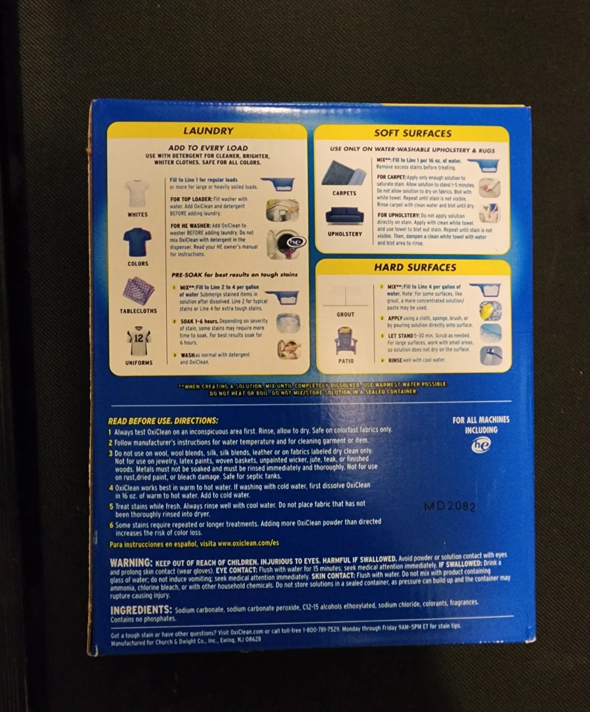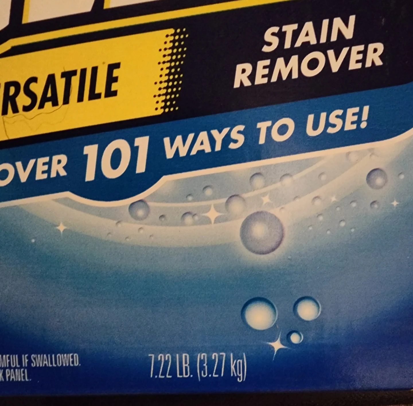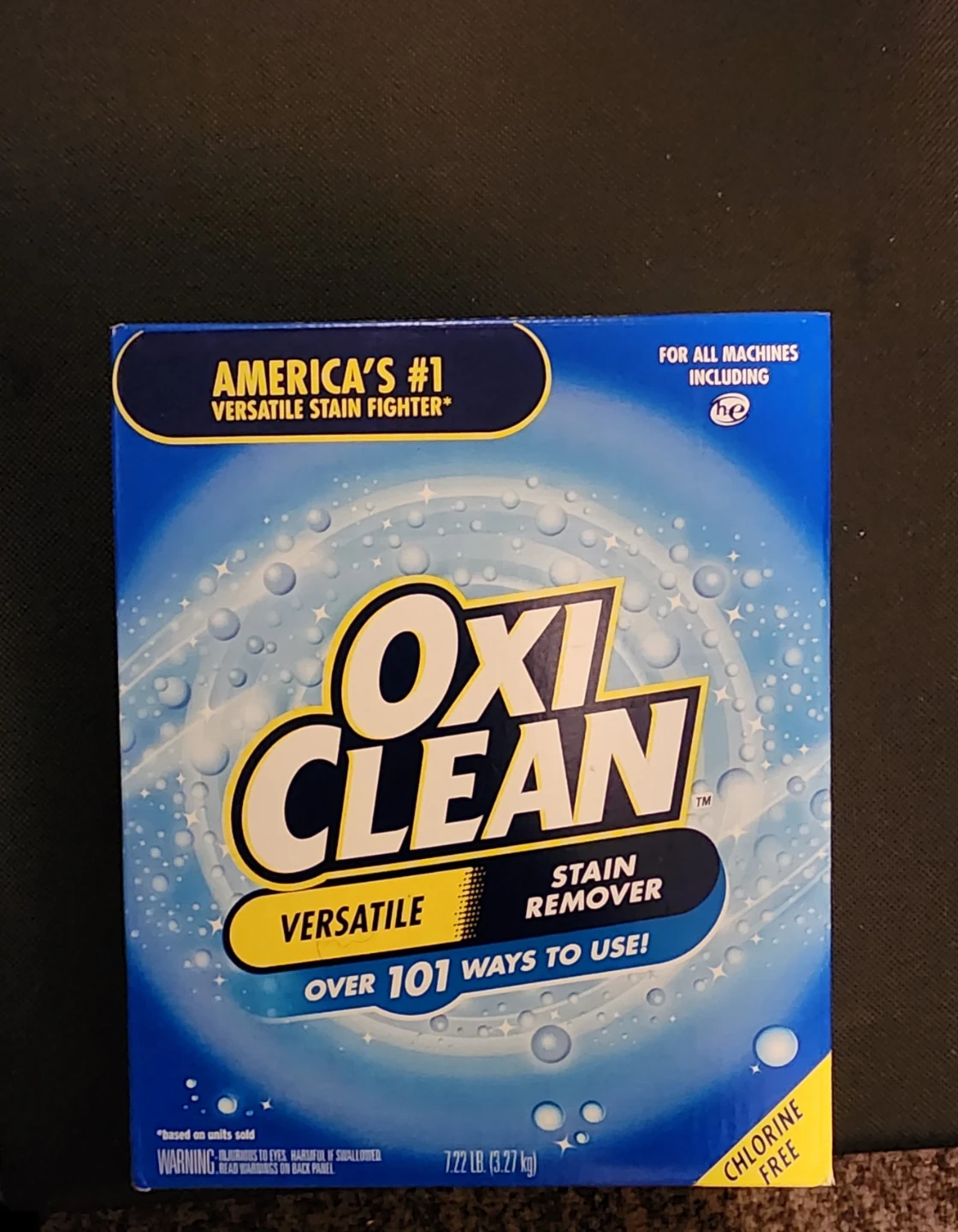 OxiClean Versatile Stain Remover powder is designed for use in all washing machines, including HE models. It's a chlorine-free formula that works in over 101 ways to tackle tough stains. The container holds 7.22 LB (3.27 Kg) of product.