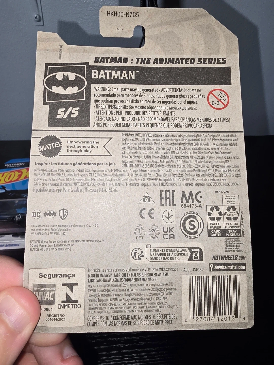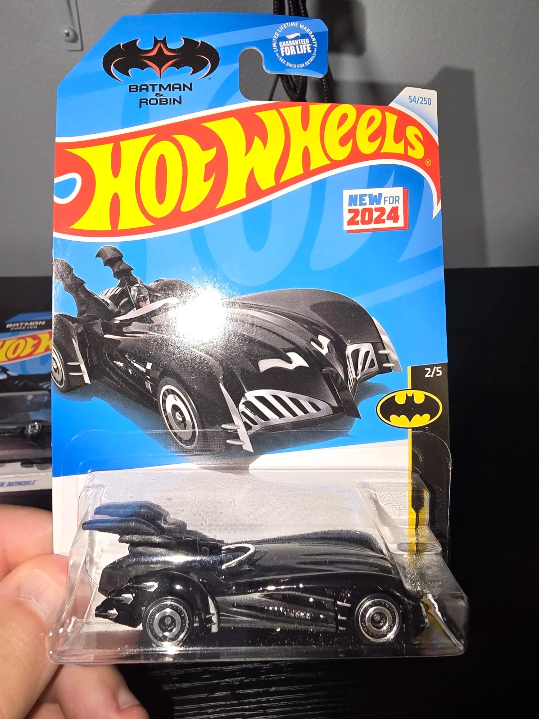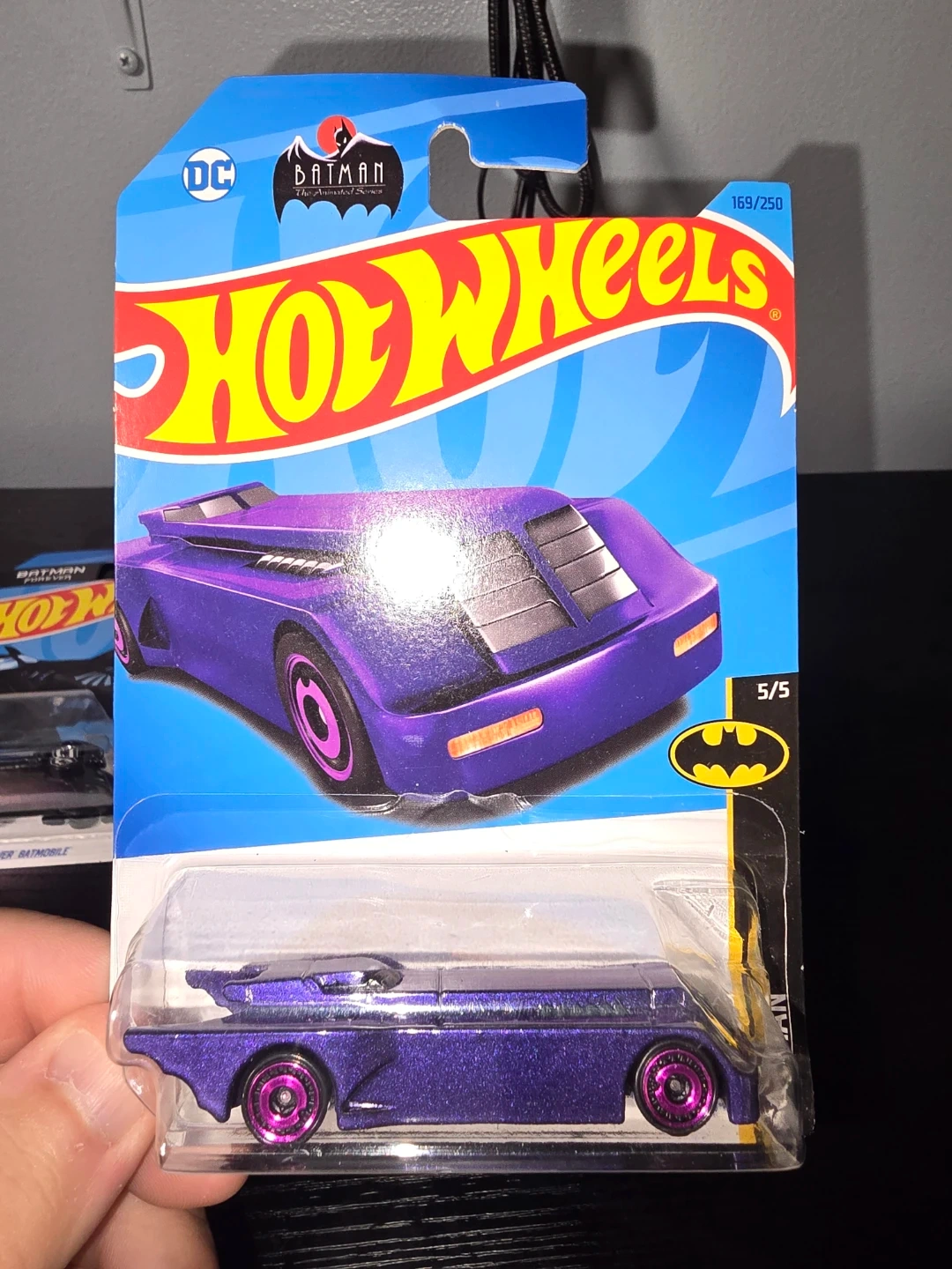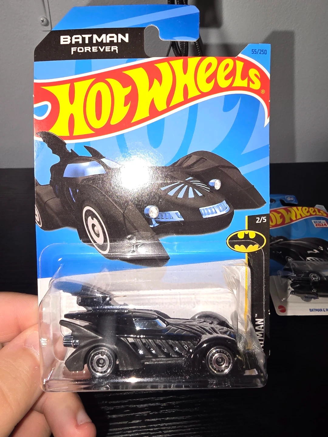 Three Hot Wheels Batman Batmobile die-cast cars. Includes the Batmobile from Batman Forever, Batman & Robin, and Batman: The Animated Series. Each is 1:64 scale and comes in original packaging.