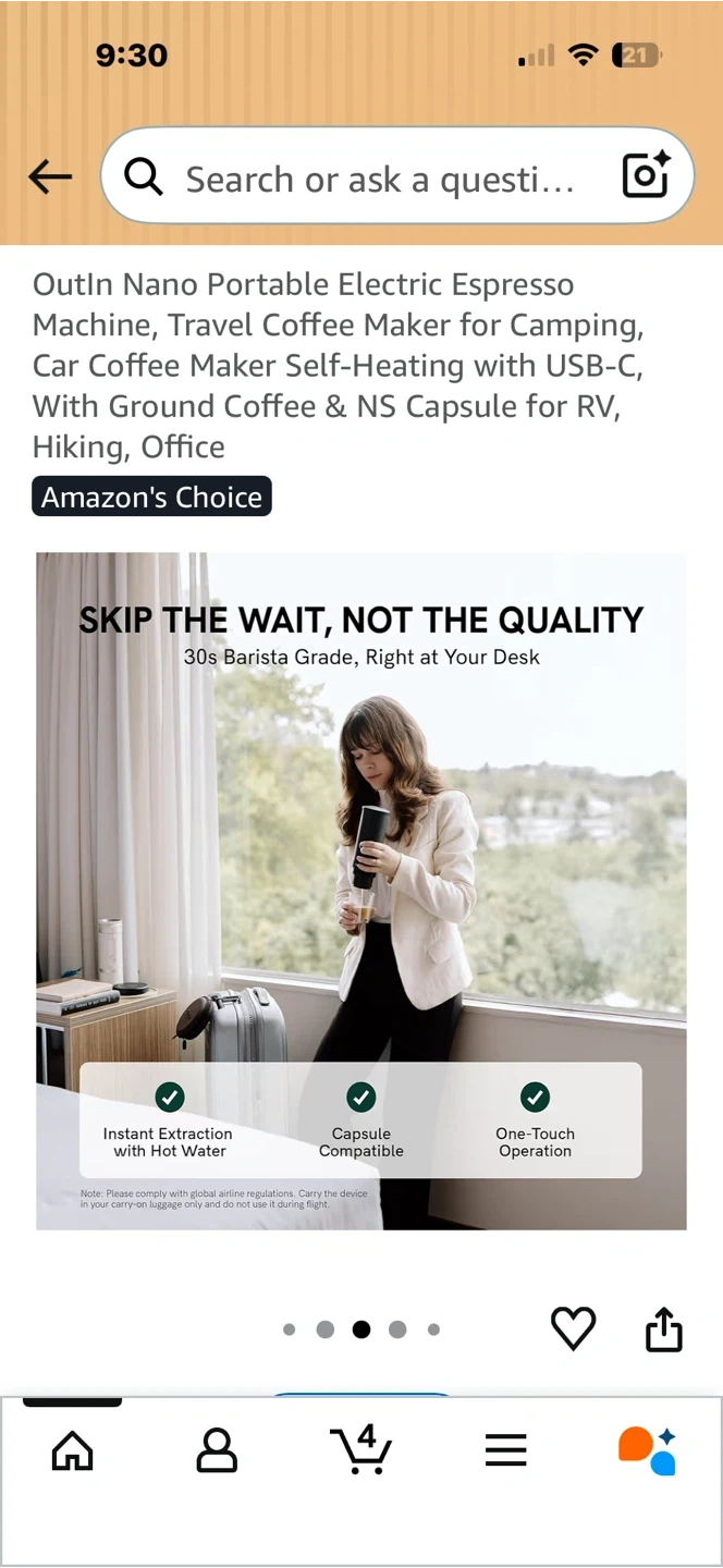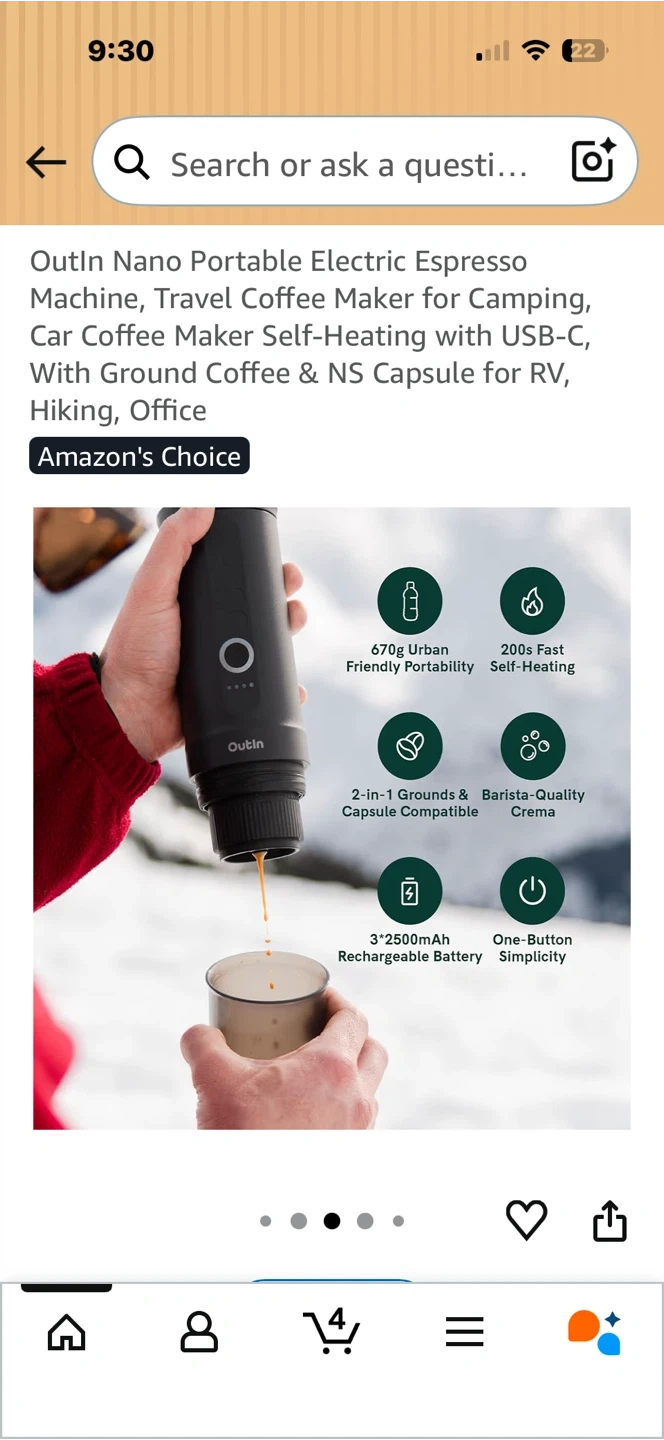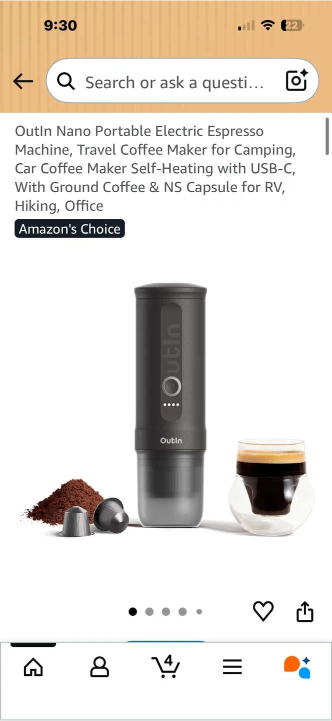 This Outin Nano portable electric espresso machine makes coffee on the go. It's compatible with ground coffee and NS capsules. The rechargeable battery offers convenient, one-touch operation for barista-quality crema wherever you are.