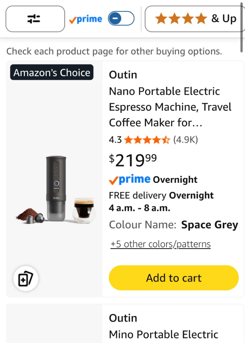 Outin Nano Portable Electric Espresso Machine - Space Grey