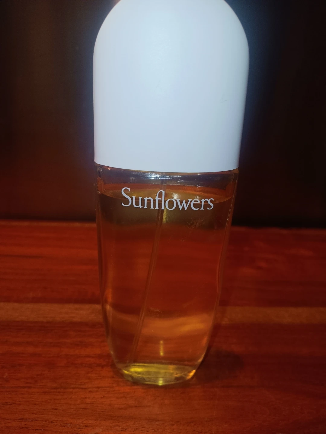 This is Elizabeth Arden Sunflowers Eau de Toilette spray. It's a refreshing scent with a floral fragrance. The bottle is made of glass.
