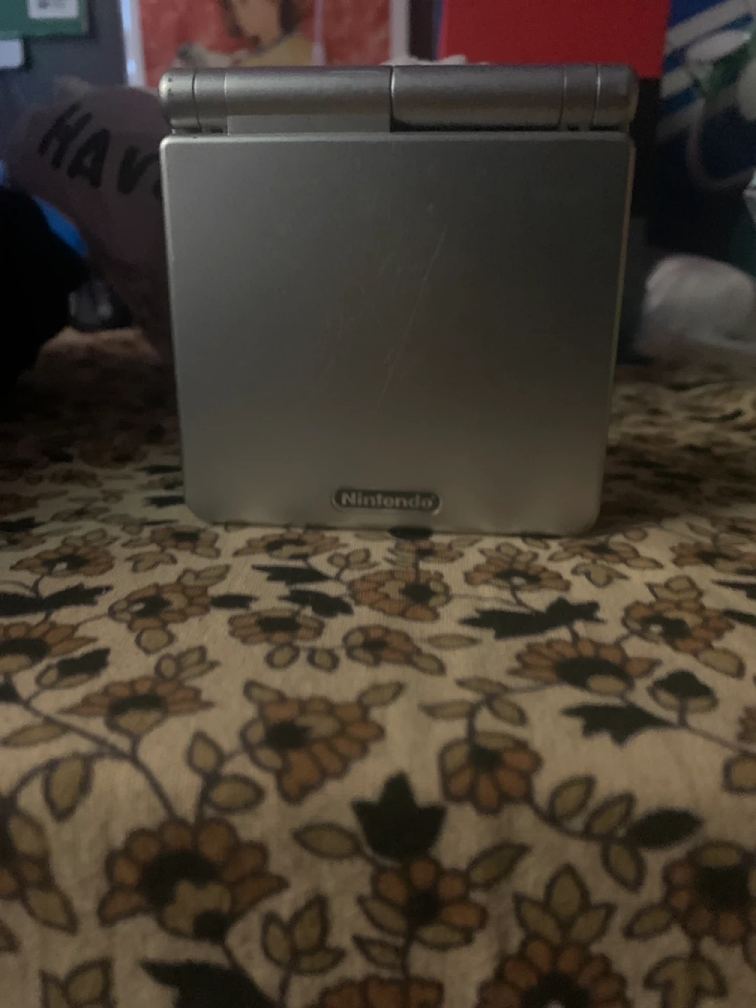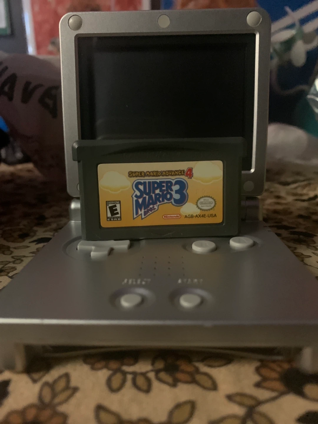 This is a silver Nintendo Game Boy Advance SP. It's in good condition and includes the Super Mario Advance 4 cartridge! This handheld is great for on-the-go gaming.