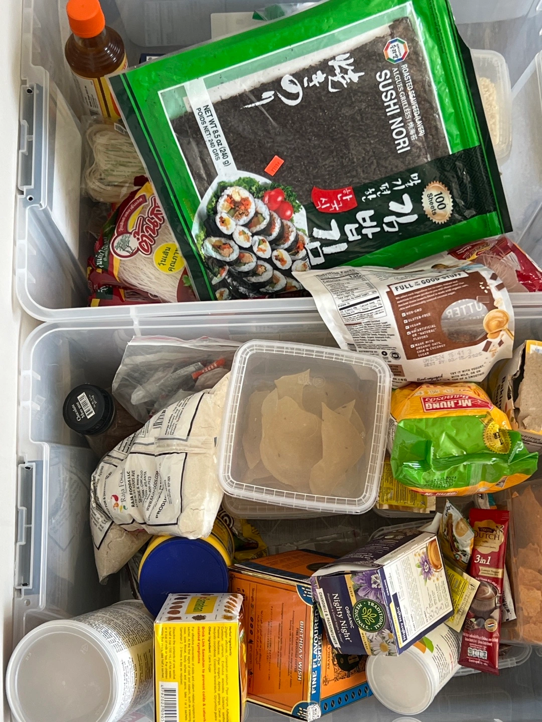 Large lot of various Asian food and ingredients. Includes seaweed sheets, noodles, rice, flour, spices, and more. Some unopened packages, some opened. Great for stocking up your pantry!