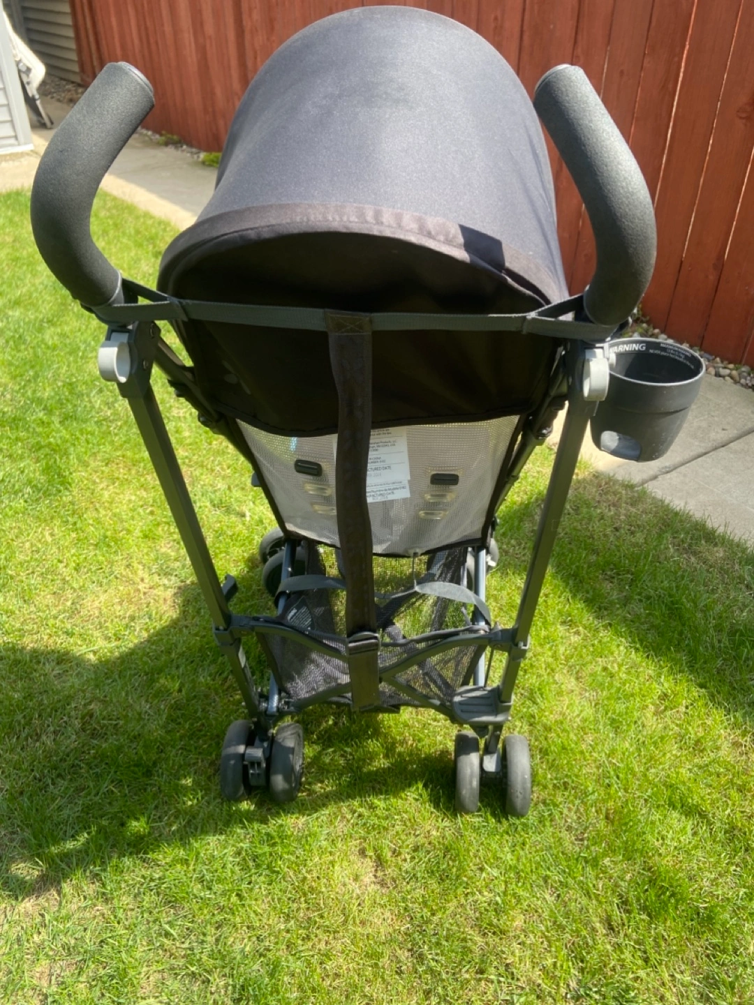 Selling an UB stroller in black. It's in good condition and ready for your little one's adventures! It's lightweight and easy to maneuver, making it perfect for walks in the park or trips to the store. Barely used- little wear on wheels.