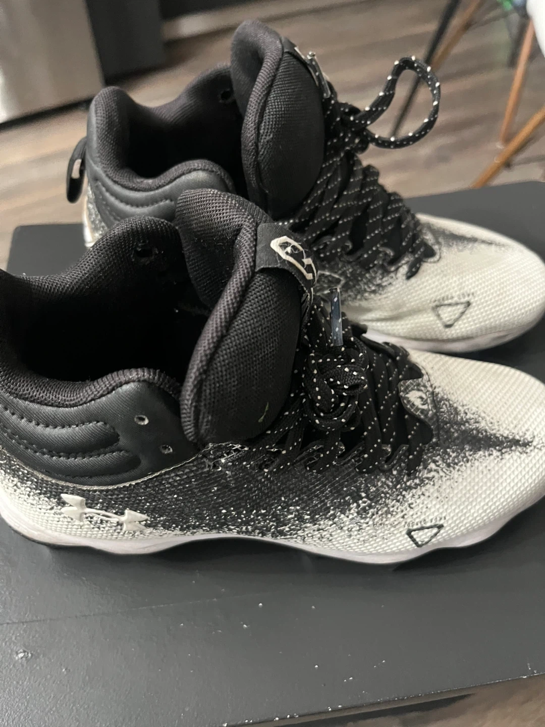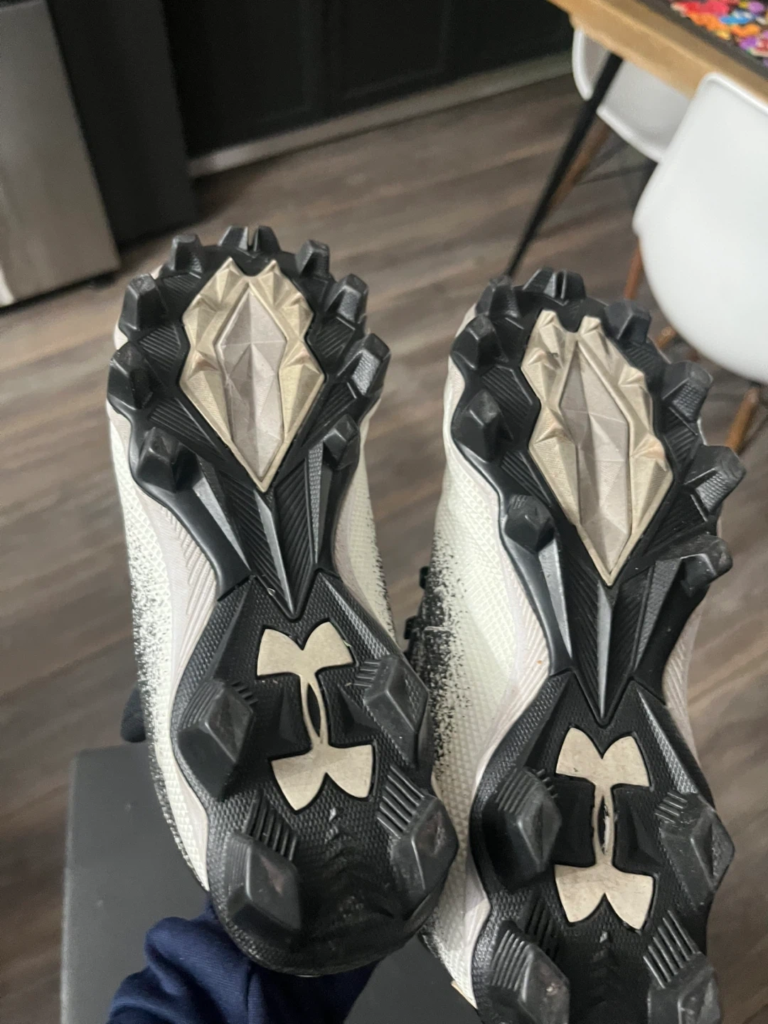 🏆Under Armour spotlight franchise RM 2.0 youth football cleats in black and white. Size 5.5Y. Features a durable cleated sole for traction. Pick up only. Closest intersection is Jane St and Eglinton Ave