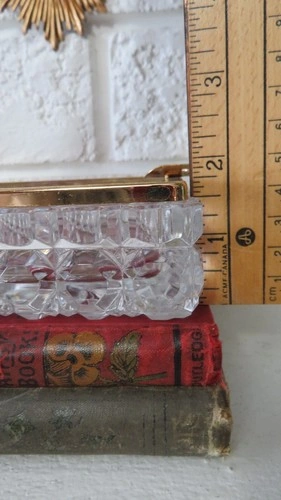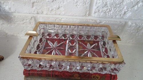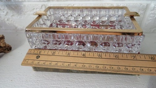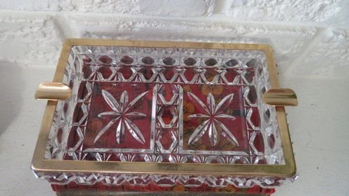This genuine lead crystal piece is perfect for weddings with a cigar/cigarette bar! Made of high-quality crystal and featuring a gold trim, including two cigar rests, it is sure to impress! Dimensions: 18cm x 12cm x 5cm. No cracks or damage, in perfect condition.