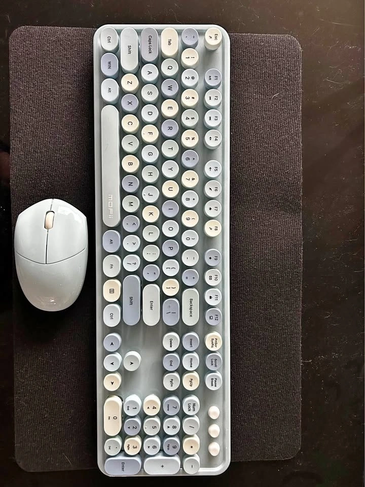 Cute clicker Mofii keyboard and mouse set, used for about 2 years and in good condition. Changing my desk color scheme and got a new keyboard, so no longer needed. Battery operated (AA batteries needed). Mouse contains USB dongle to connect to computer/laptop. Originally purchased for $36.99 on Amazon. Pickup in Downers Grove or can meet in surrounding suburbs. Cash preferred, Zelle accepted.