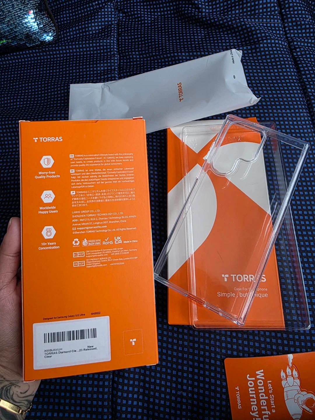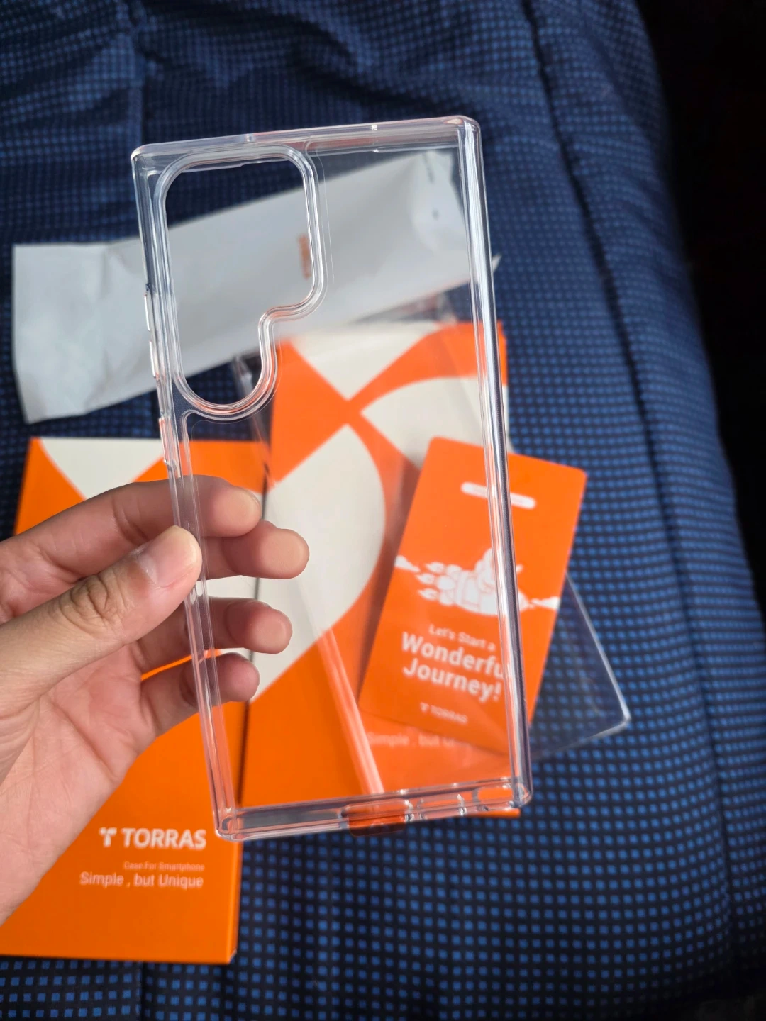 This is a clear, protective phone case designed for the Samsung Galaxy S23 Ultra. It's made from durable materials and comes with its original packaging. The case is designed to be simple but unique, offering good protection.