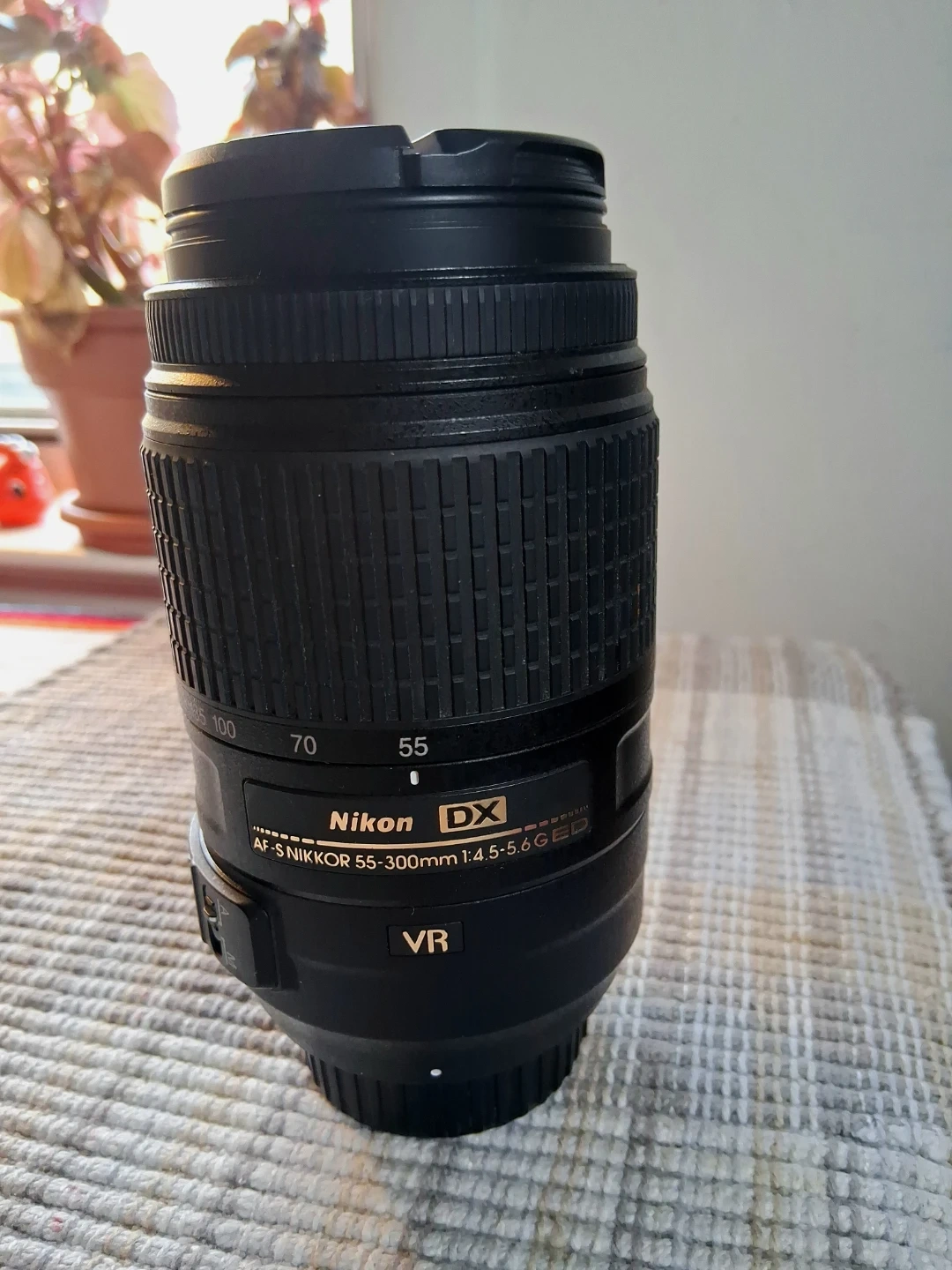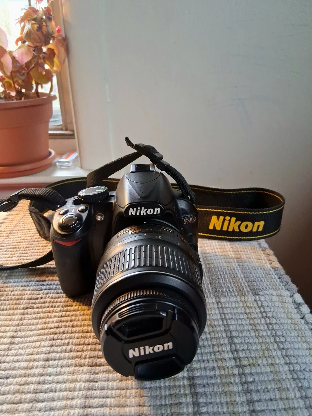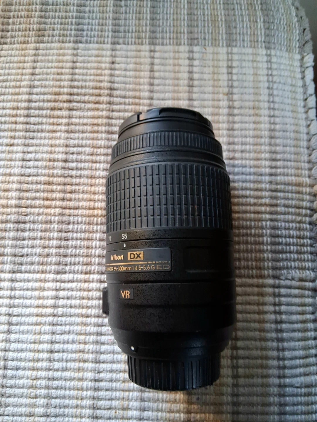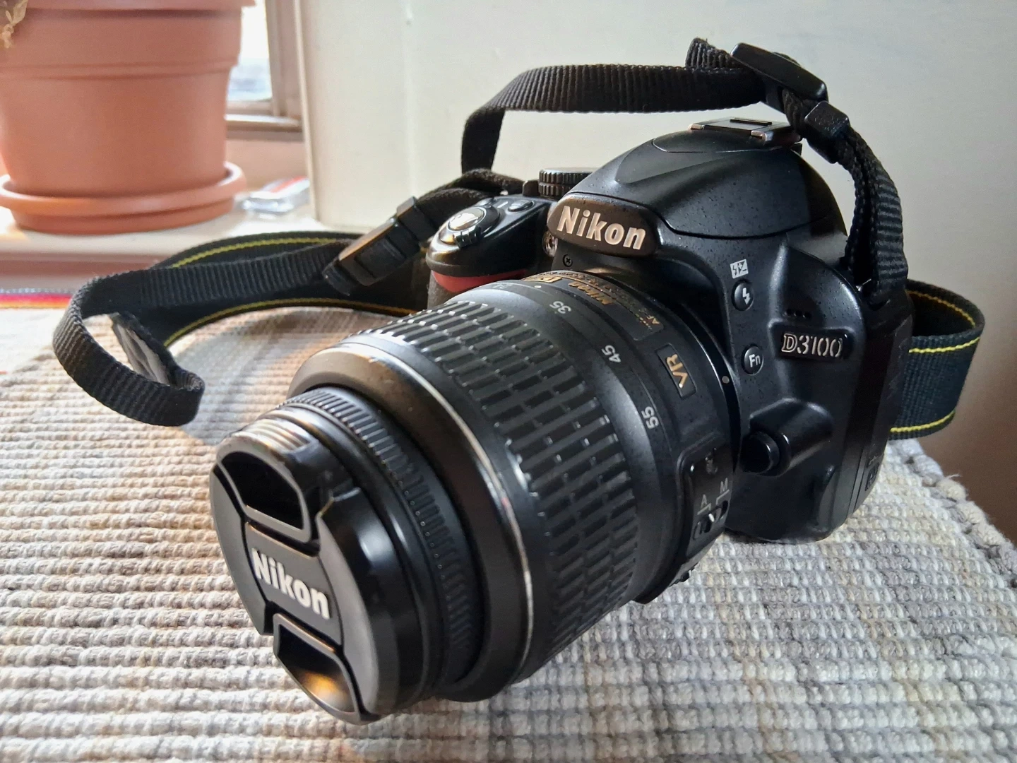 Nikon D3100 DSLR camera body with a Nikon AF-S NIKKOR 18-55mm 1:3.5-5.6G VR lens and AF-S NIKKOR 55-300mm 1:4.5-5.6 GED.