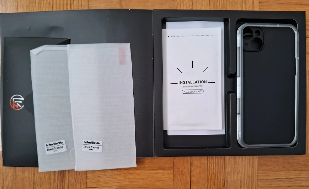 New, unopened LK phone case and screen protector kit. Includes clear case and two screen protectors. Designed for iPhone 14 max/plus. Installation kit included. Smart mobile, smooth life.