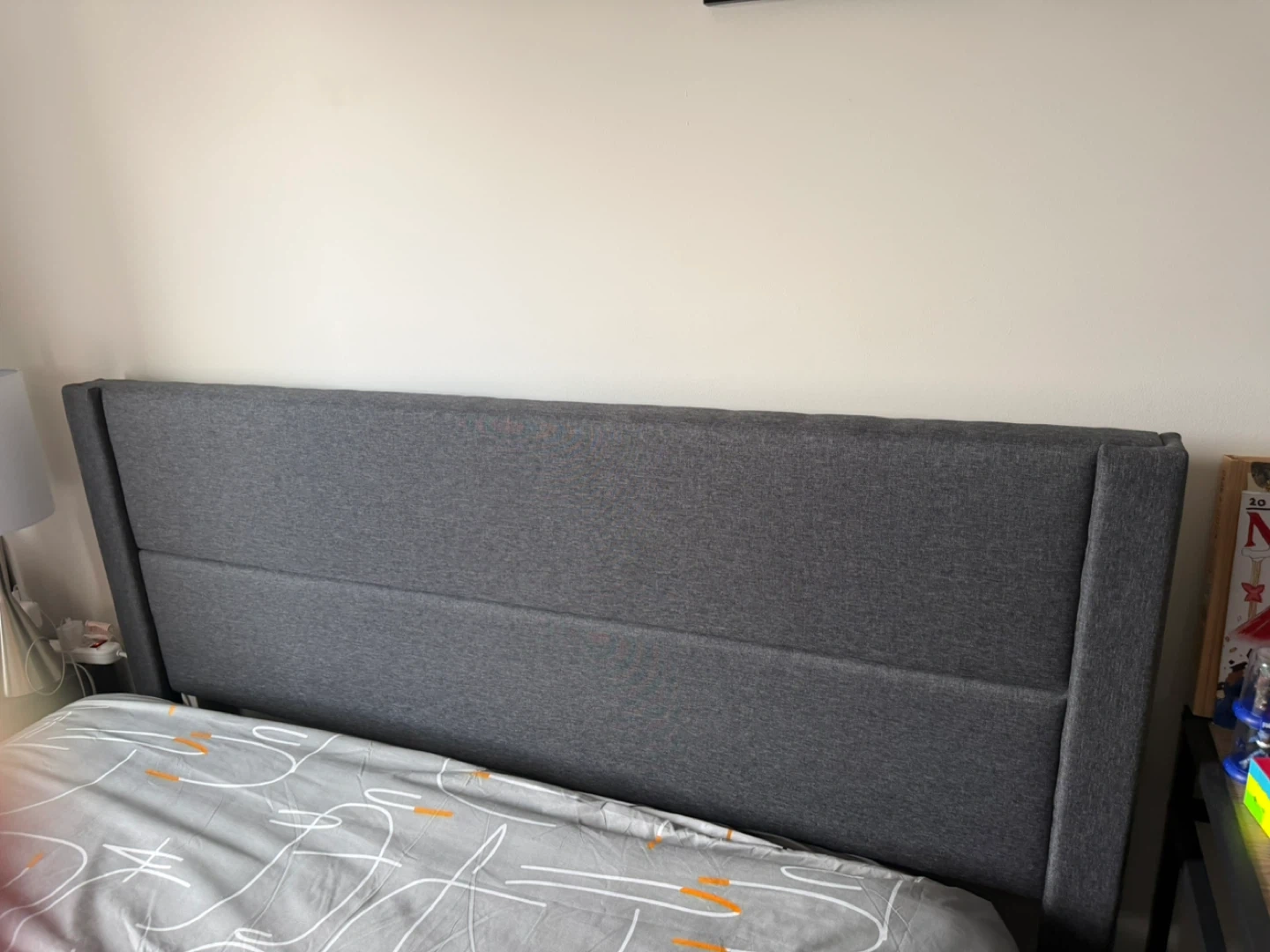 Grey Fabric Headboard and Bed Frame