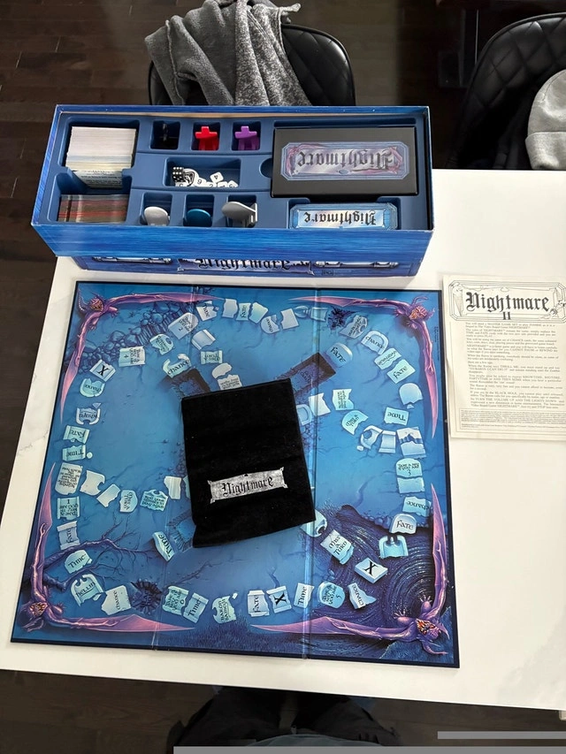 Relive the 1990s with this rare and complete Nightmare VHS board game, featuring the Gatekeeper! This classic game is in great condition and ready for a new generation to enjoy. All pieces are accounted for, including the original VHS tape, cards, board, and dice. Complete with all original components. VHS tape and instructions included. For 2-6 players. Ages 12+. Priced at $100. If the ad is still up, the game is available!