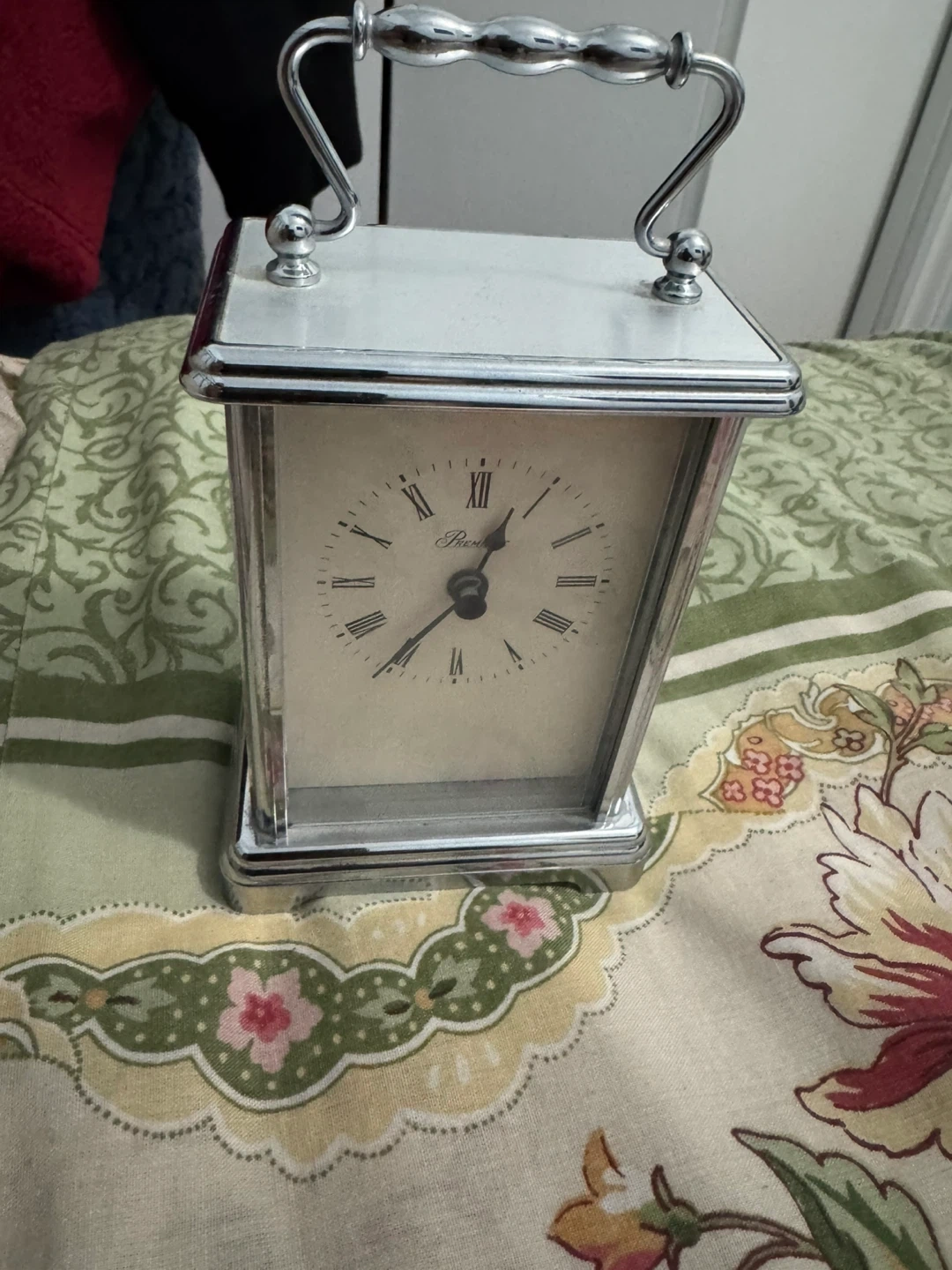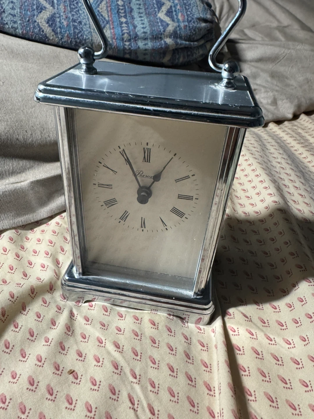 Here's a lovely Premier carriage clock in silver! It's in great condition and would look perfect on a mantelpiece or bedside table