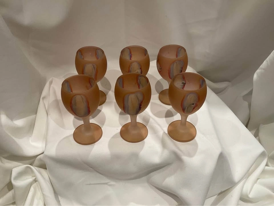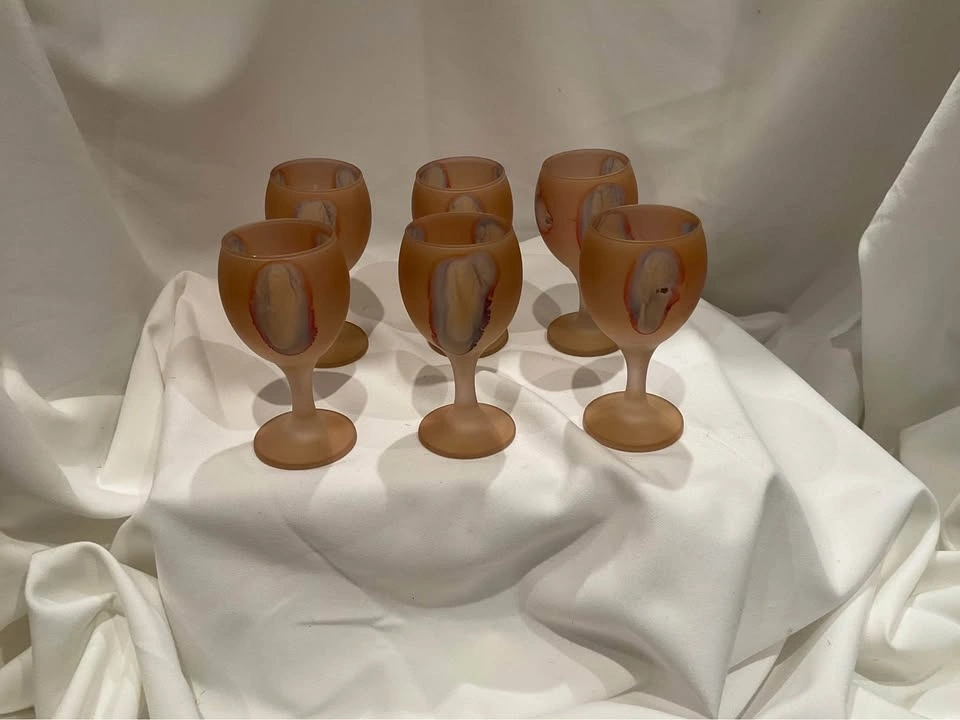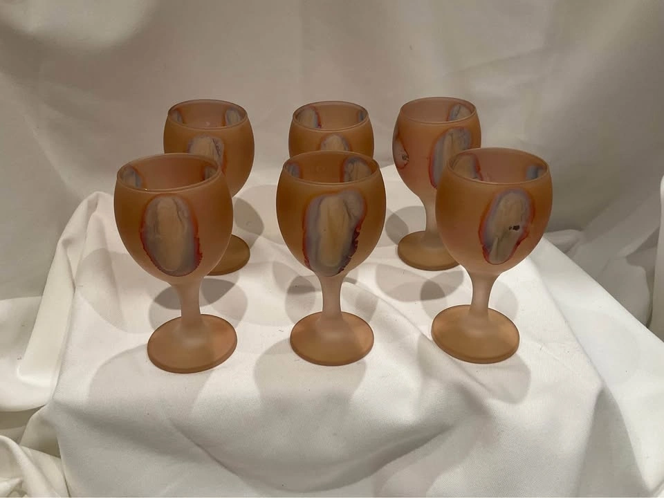 Vintage Rueven Art Nouveau Watercolour Frosted Wine/Cordial Glas