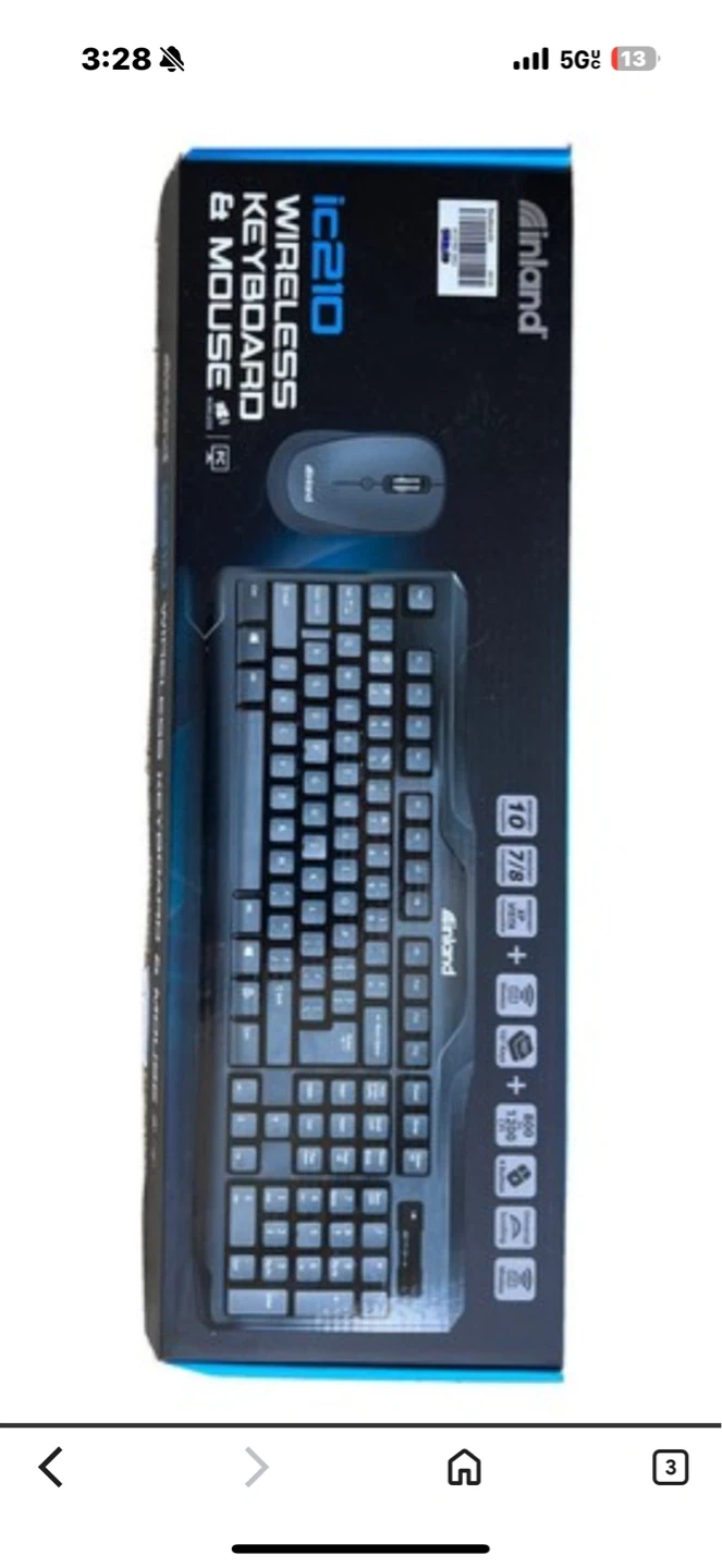This Inland IC210 combo includes a wireless keyboard and mouse. It's a black set for desktop use. Includes 10/7/8 multimedia keys and 600 DPI mouse.
