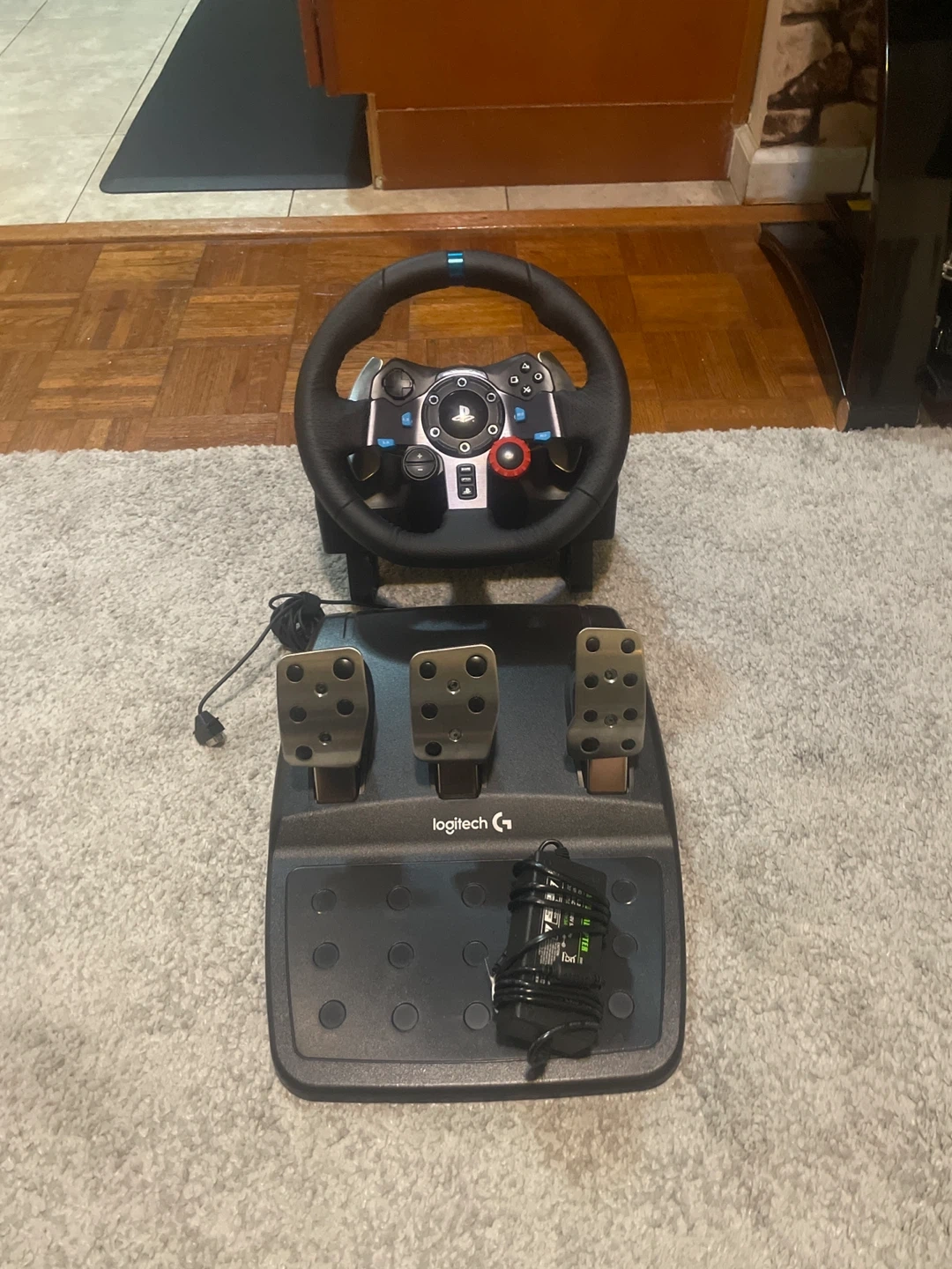 Logitech G29 Pro Racing Wheel and pedals. Includes power adapter. It's compatible with PlayStation also it is brand new used only 2 times in perfect condition.