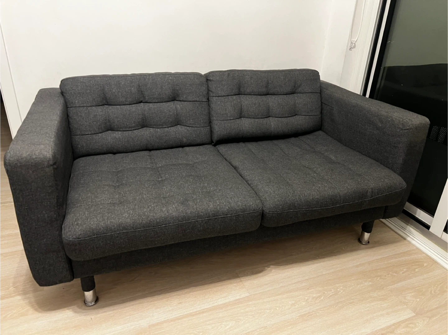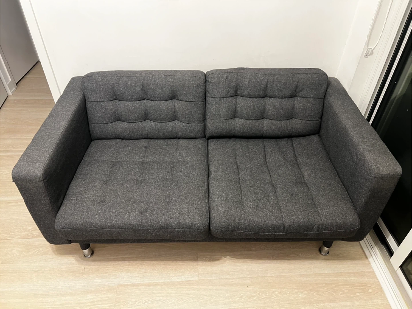 Selling a comfy grey loveseat sofa! It's in great condition and would be perfect for a small space or apartment. The colour is a neutral grey, so it fits in with any decor. Feel free to reach out if you have any questions!