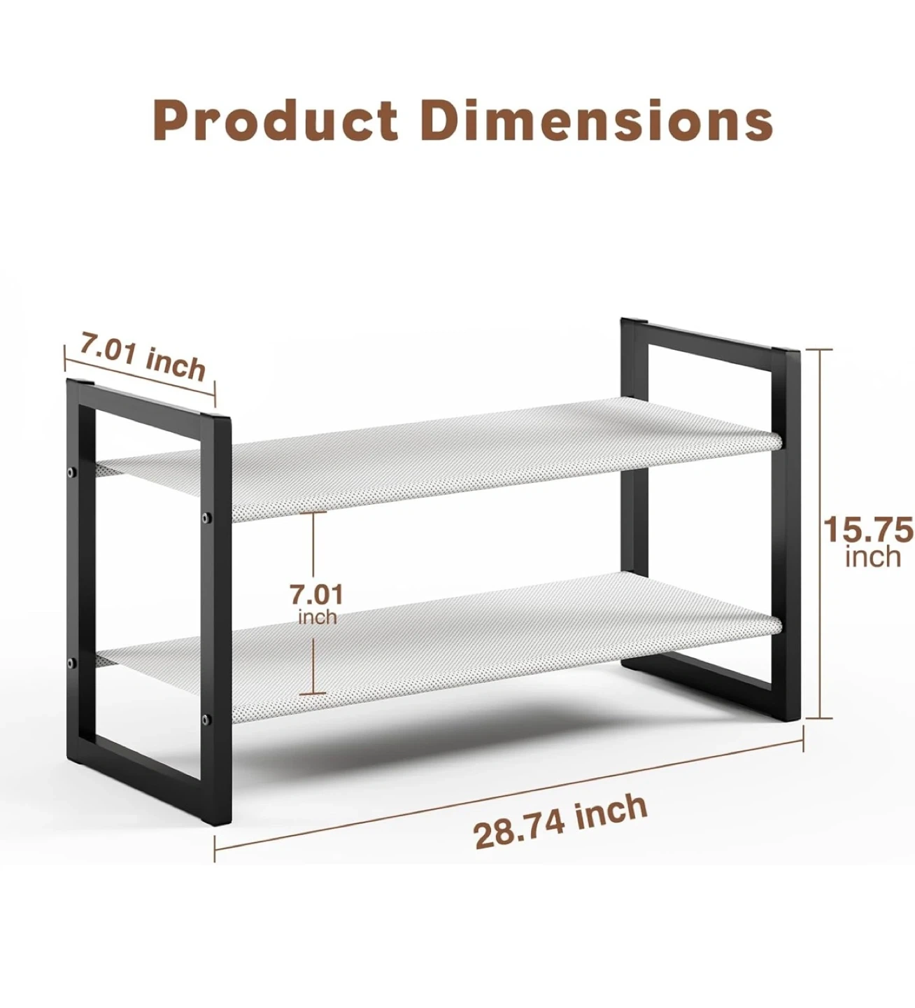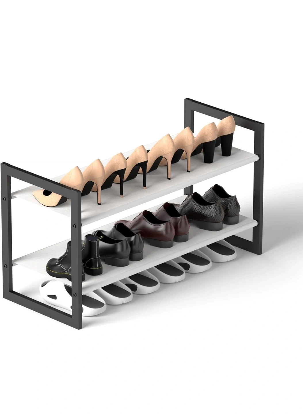 New 2-Tier Shoe Rack Organizer - Black Metal Frame