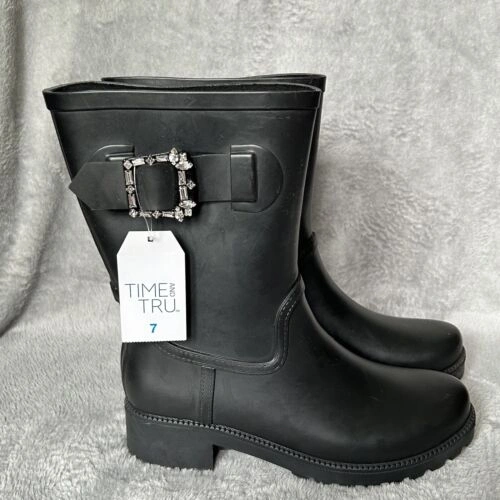Brand new women's size 7 rain boots. Black with a jewel buckle. Asking only $10. I have a few pairs available. Feel free to message if you have any questions!