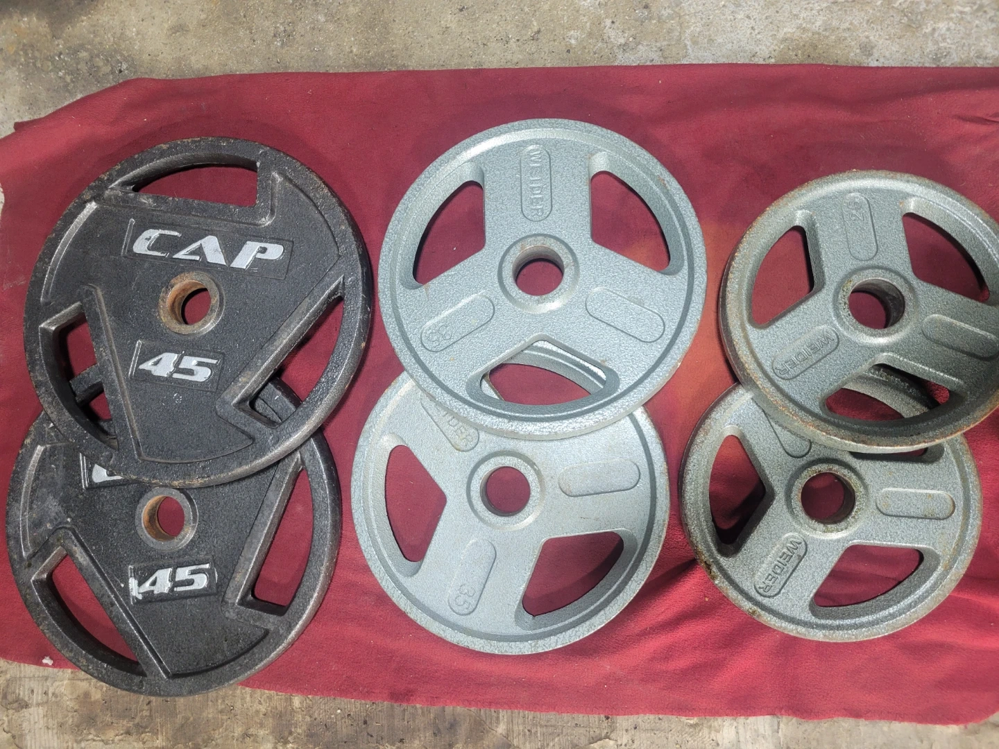 2" HOLE OLYMPIC PLATES210LBs 2-45. 2-35s. 2-25s