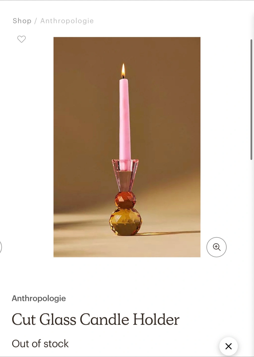 Anthropologie Cut Glass Candle Holder Set with Pink Candles (2)