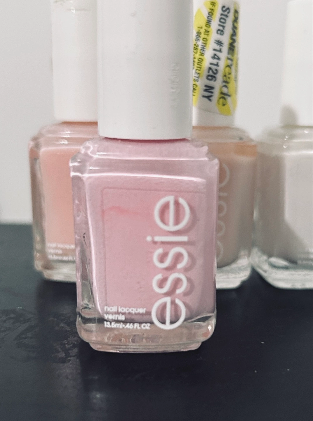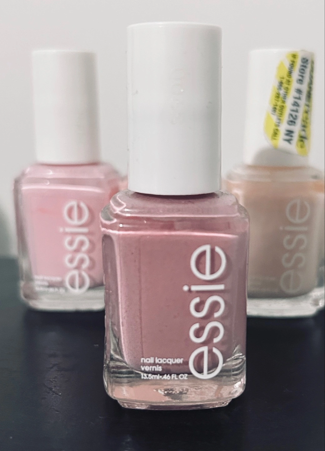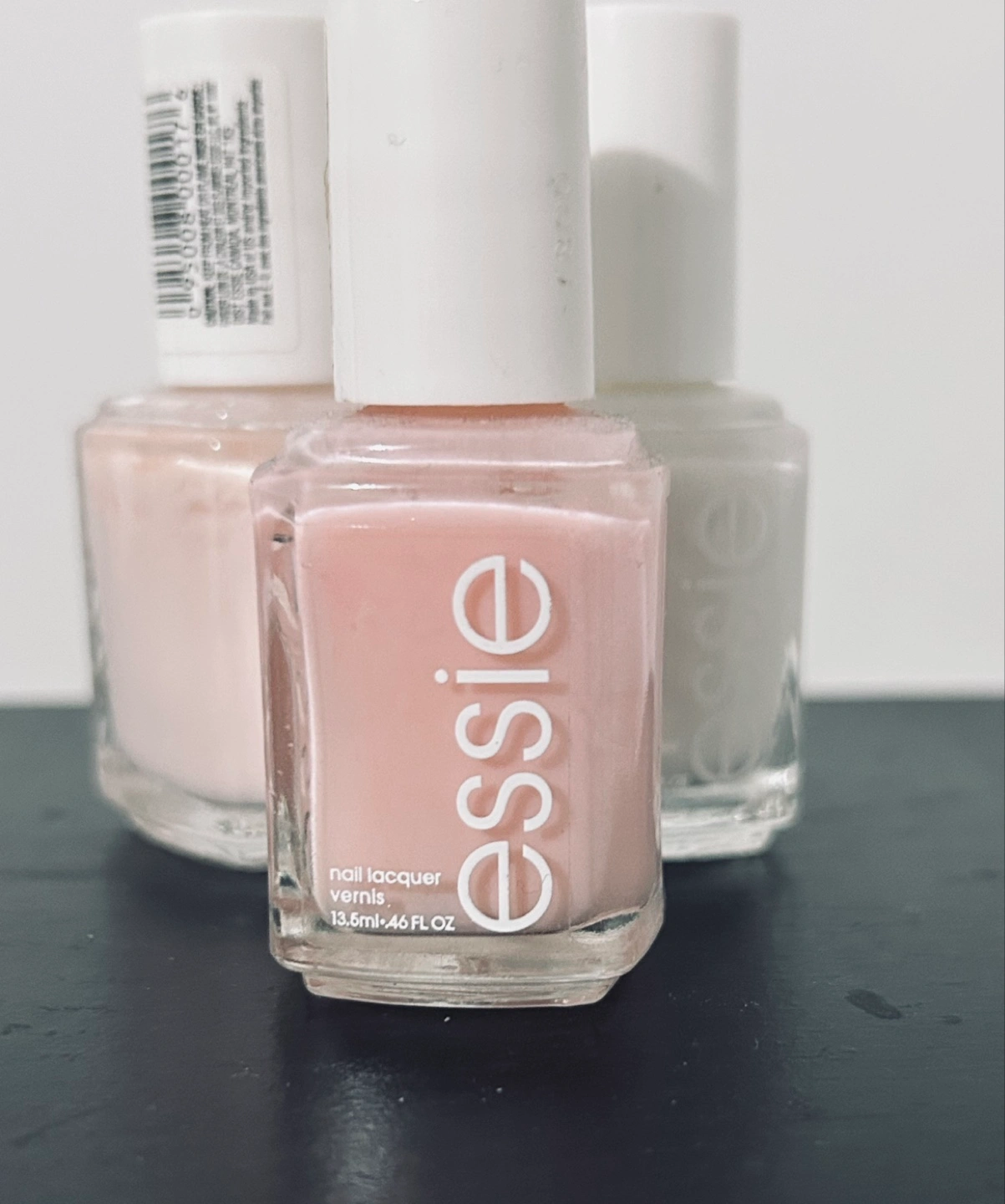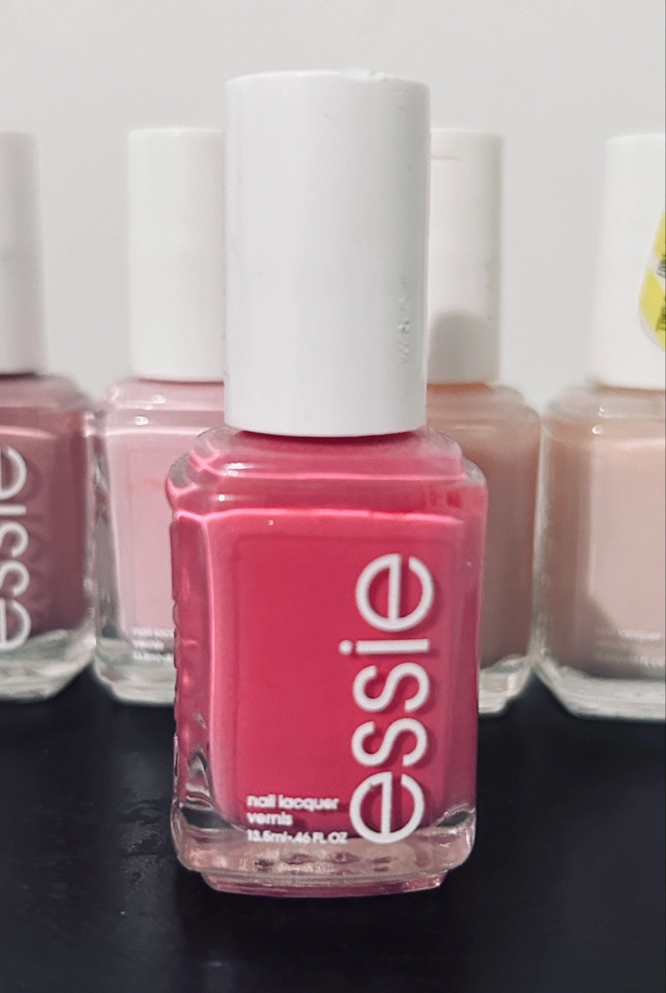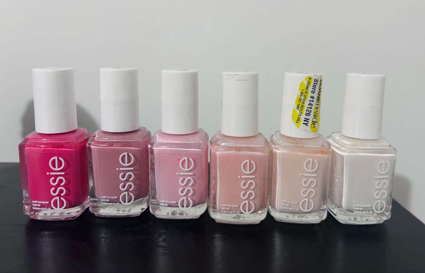 Six bottles of Essie nail polish in enamel (not gel). Various pink shades and a white one 13.5ml/.46 fl oz each. Gently used