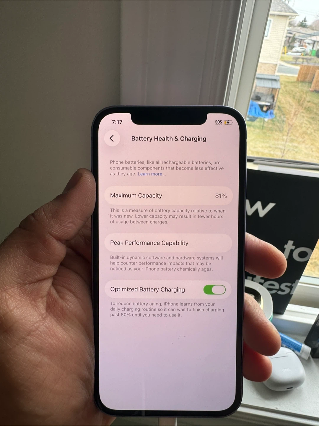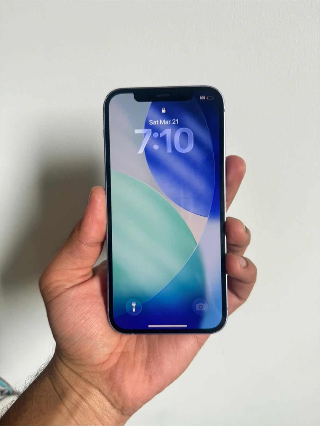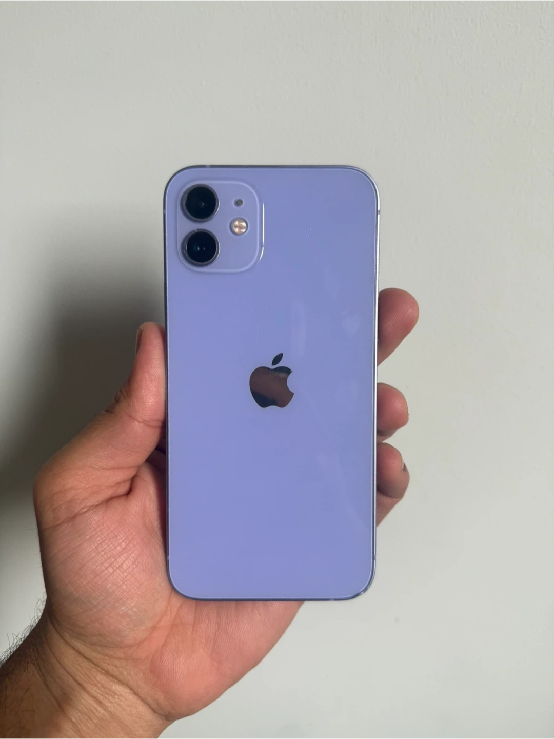 Apple iPhone 12 64 gb in a pretty purple colour. Battery health is at 81% maximum capacity.